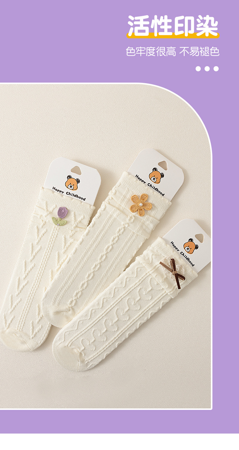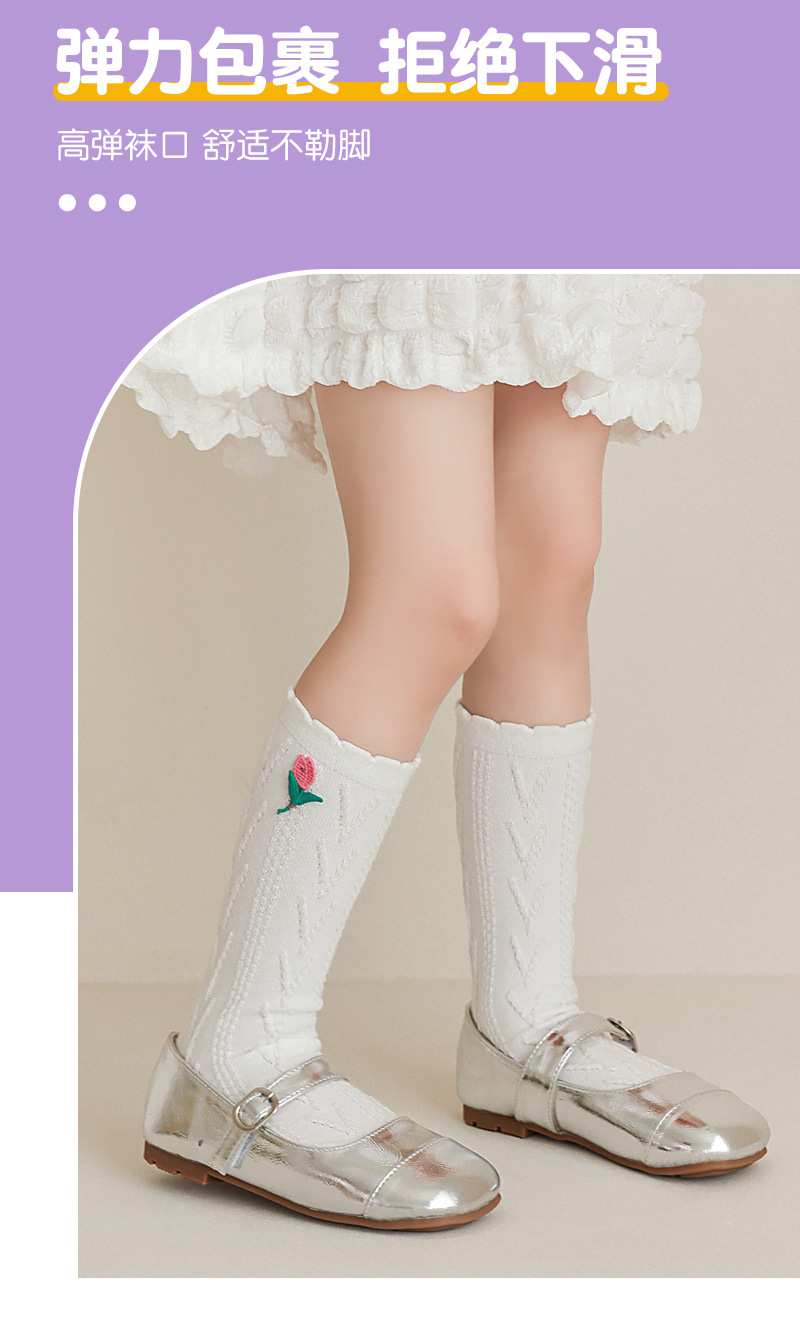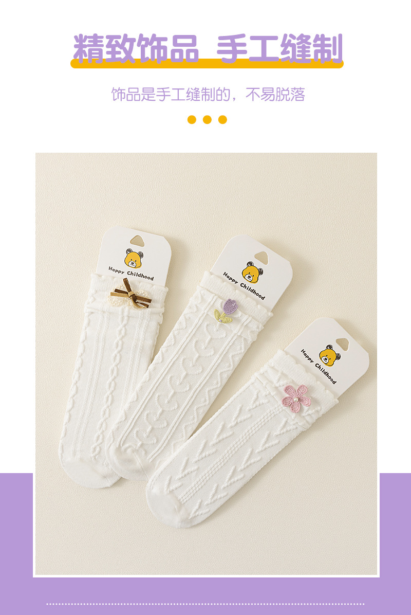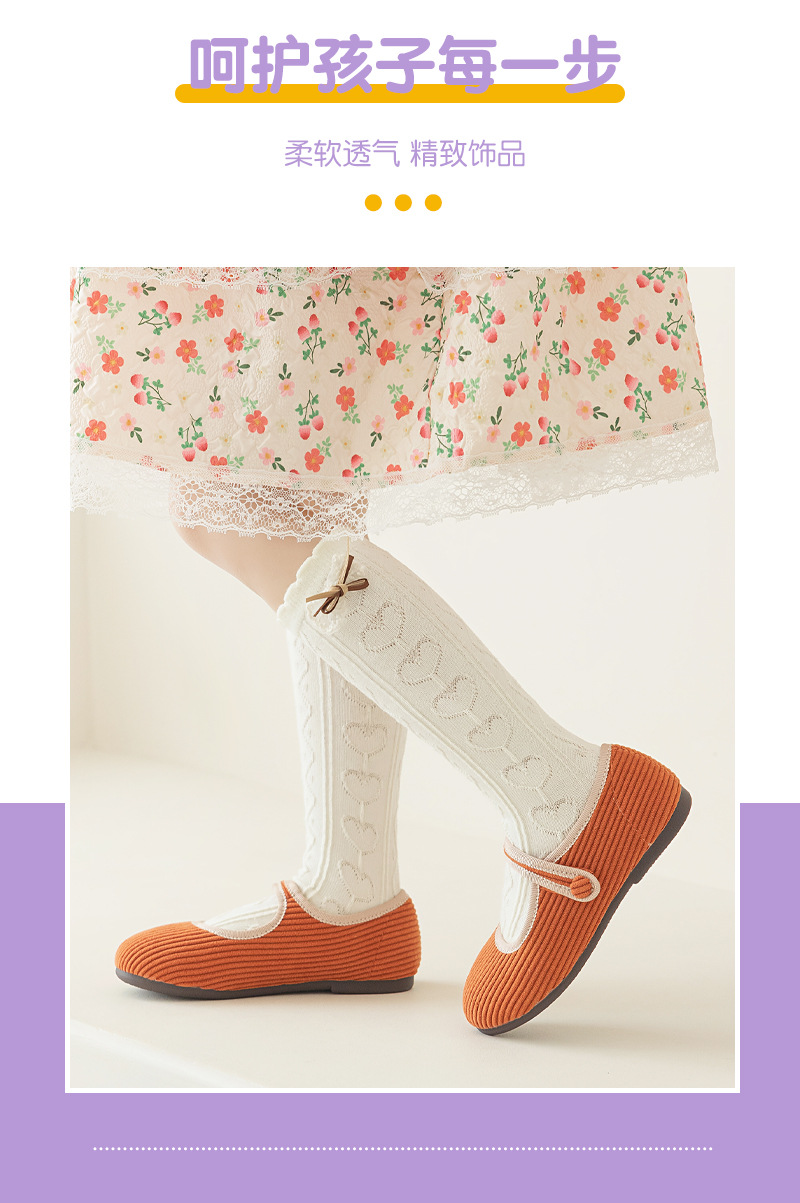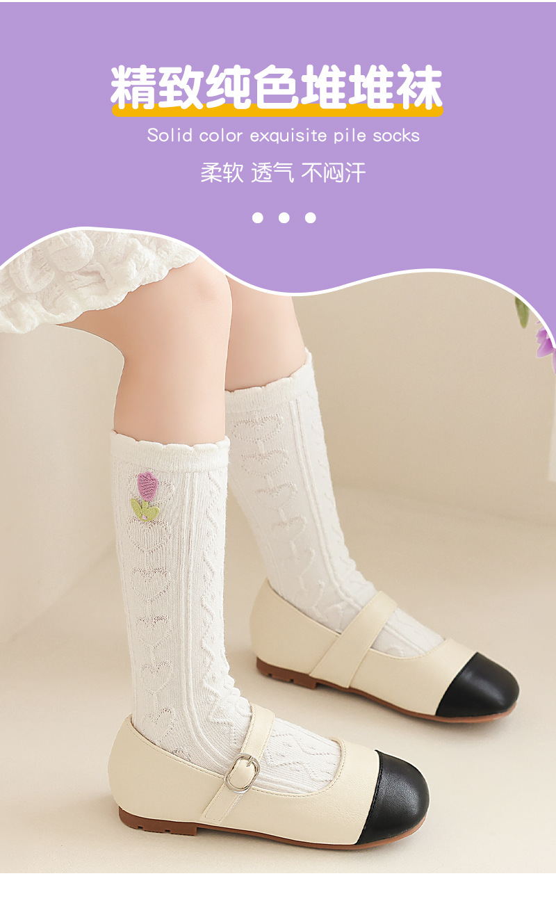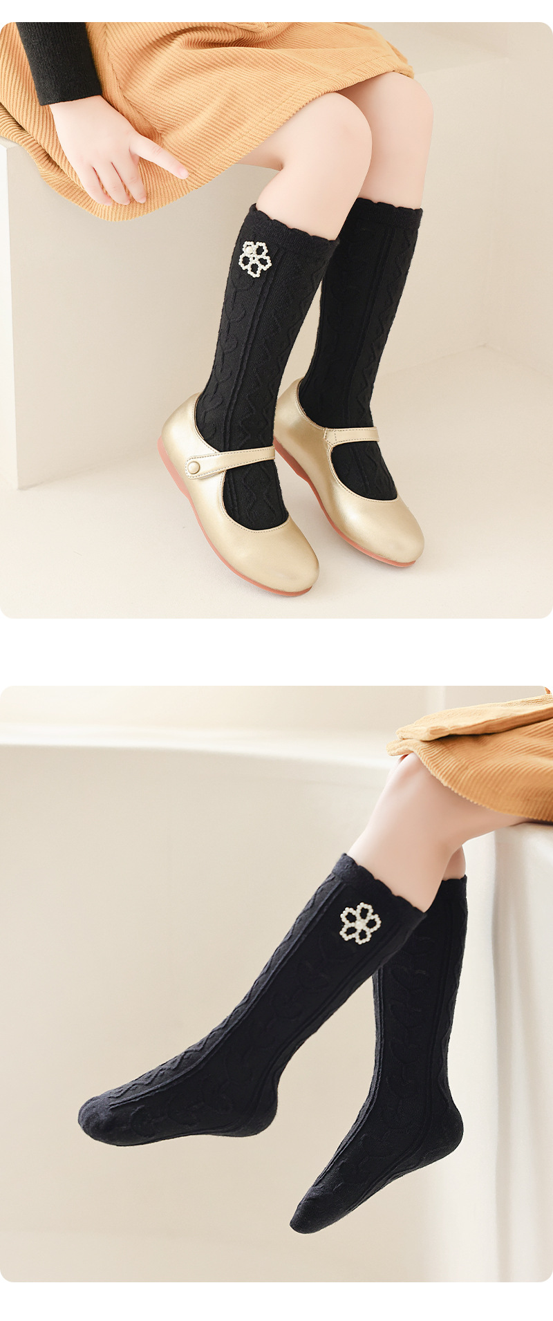 여자 양말 가을 얇은 더미 양말 어린이 자수 꽃 니트 나무 귀 측면 양말 여자 송아지 양말