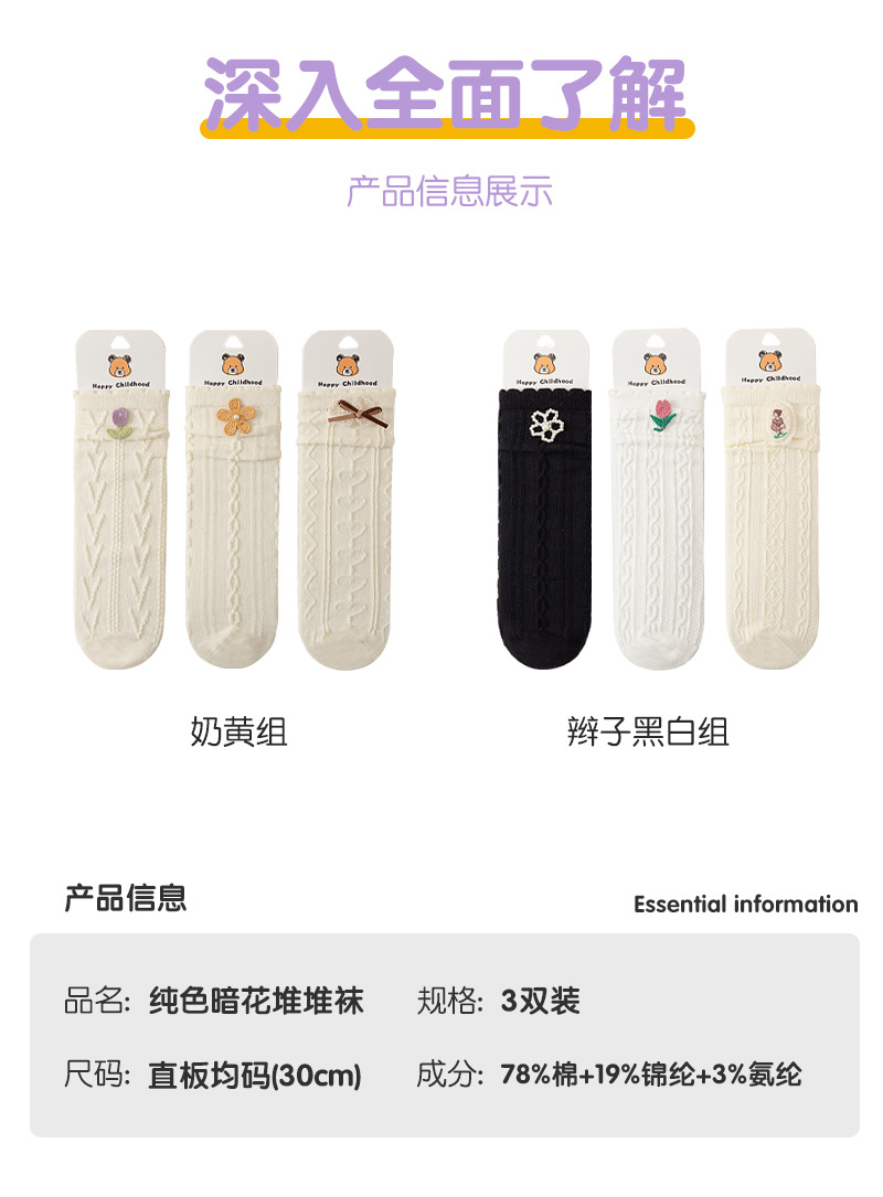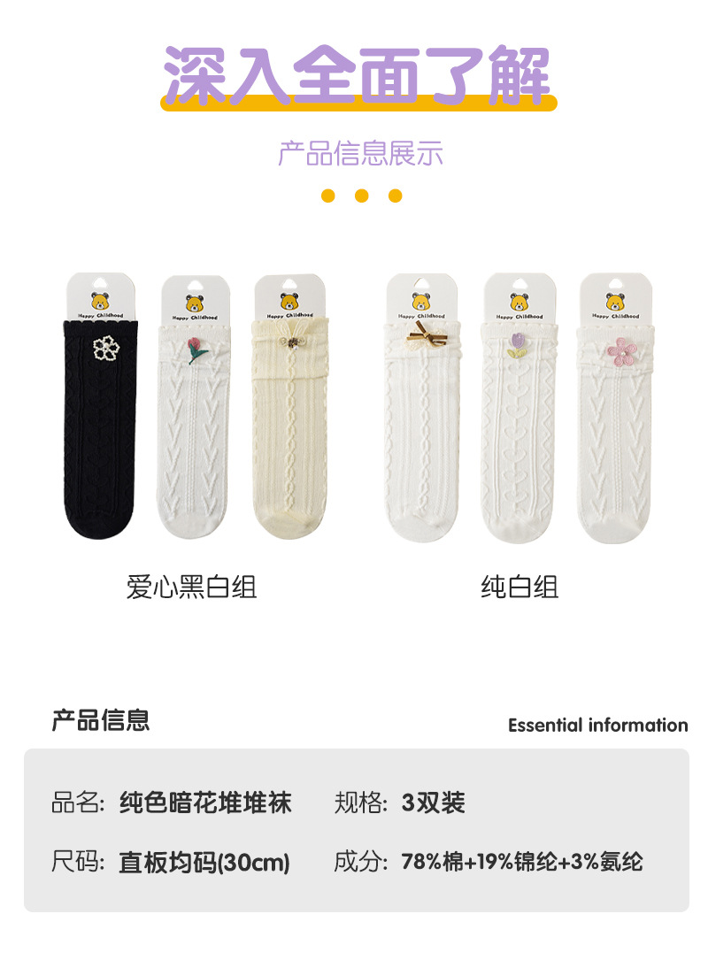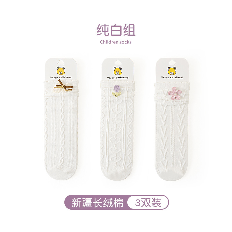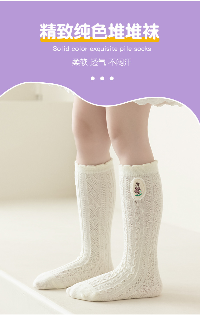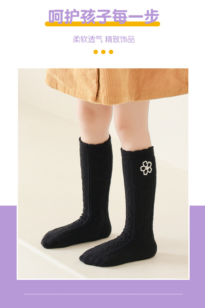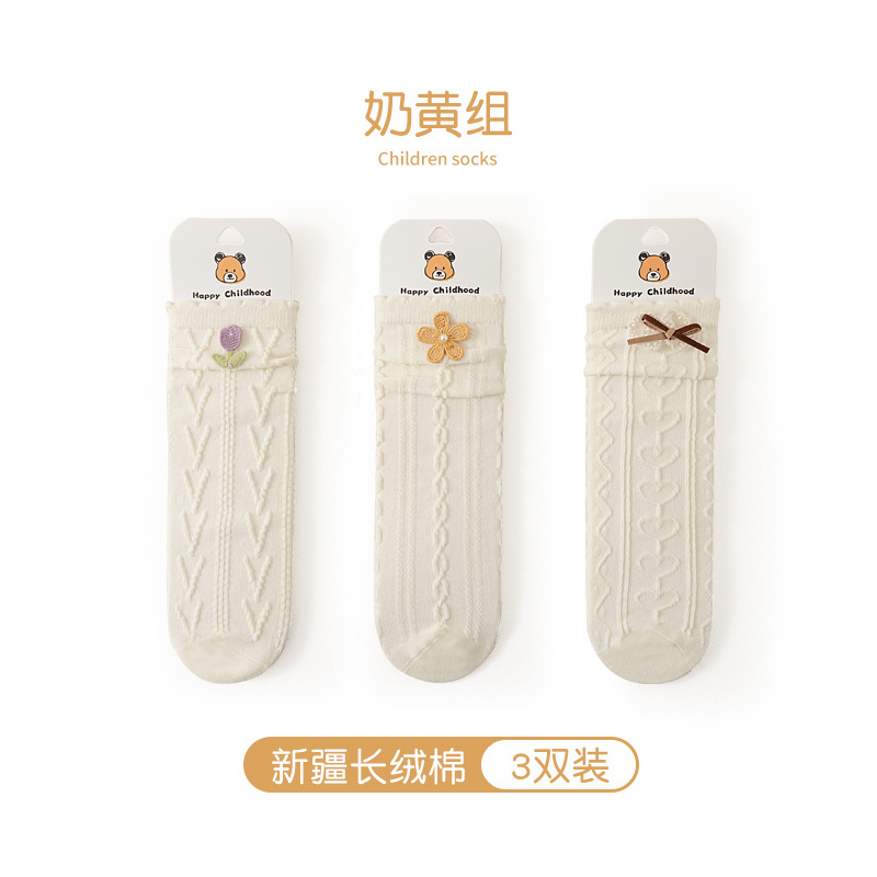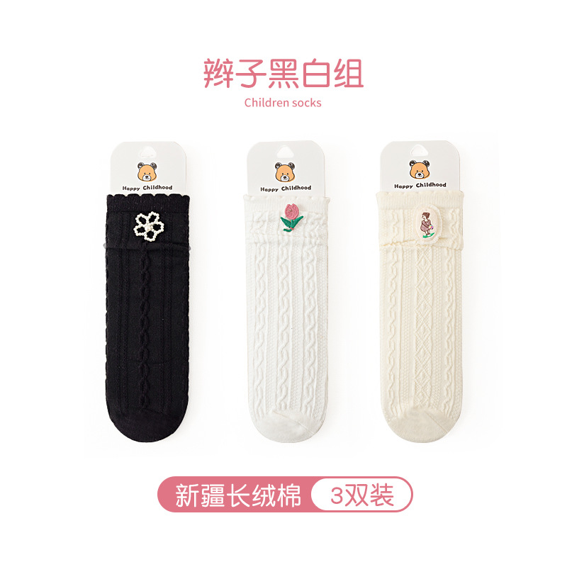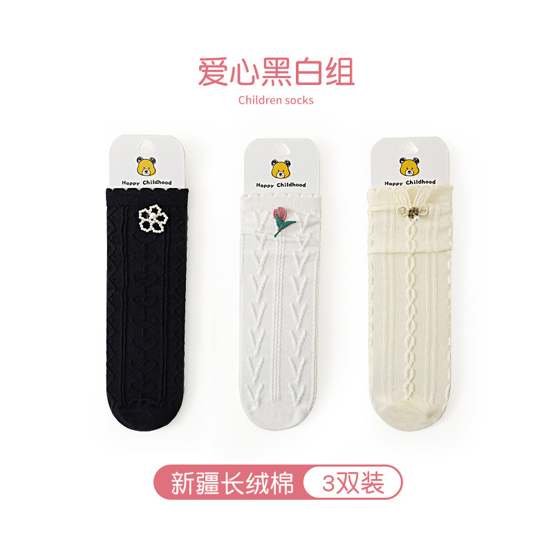여자 양말 가을 얇은 더미 양말 어린이 자수 꽃 니트 나무 귀 측면 양말 여자 송아지 양말