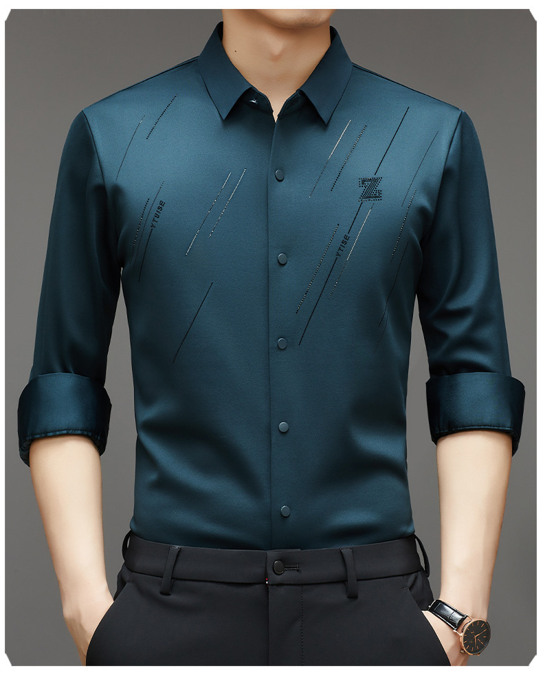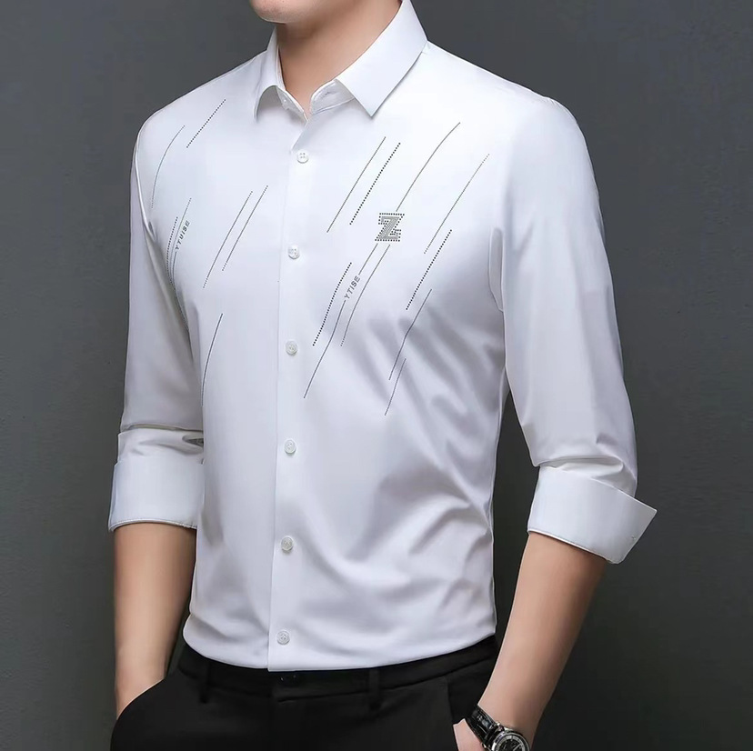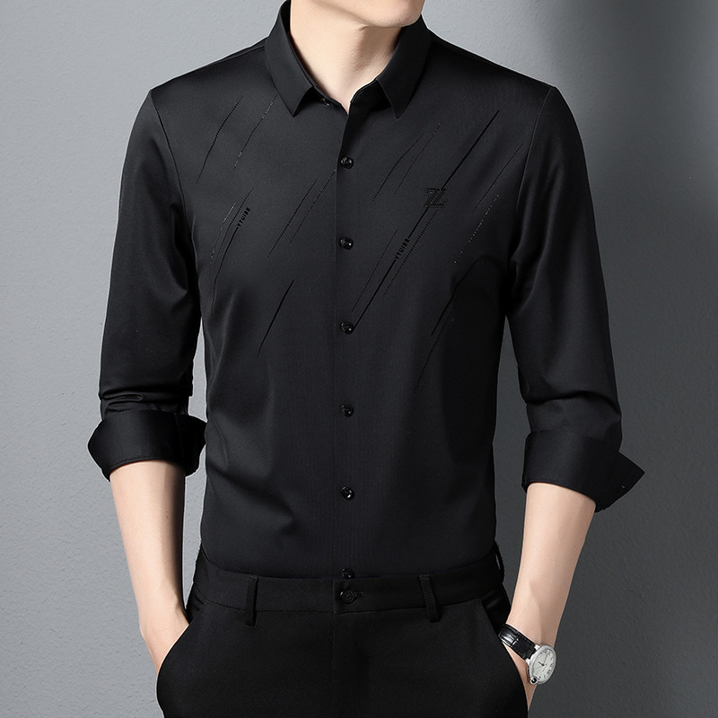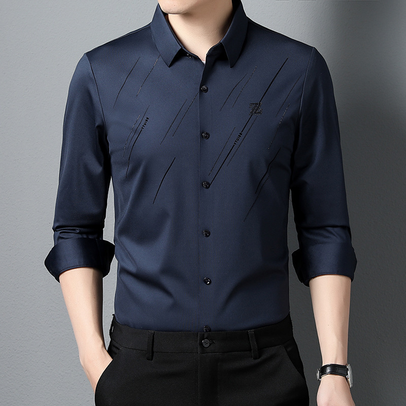 2023春秋商务品质男装衬衫时尚舒适休闲中青修身无痕长袖衬衣代发