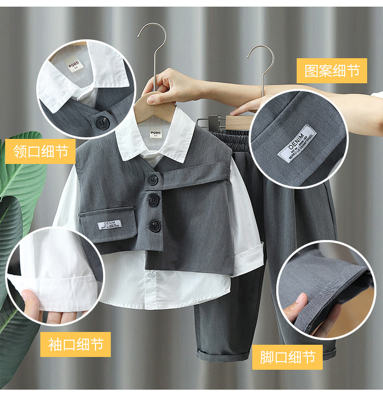 4014 아동복 남아 정장 세트 2025 봄 가을 스타일 어린이 멋진 작은 정장 남아 패셔너블한 3피스 세트스토어 가기