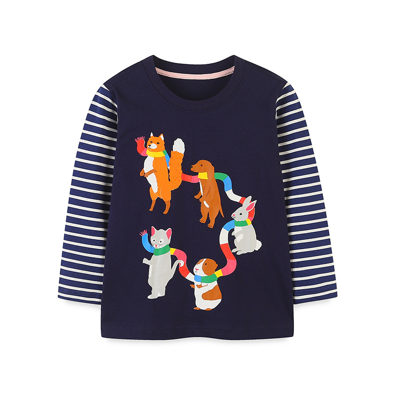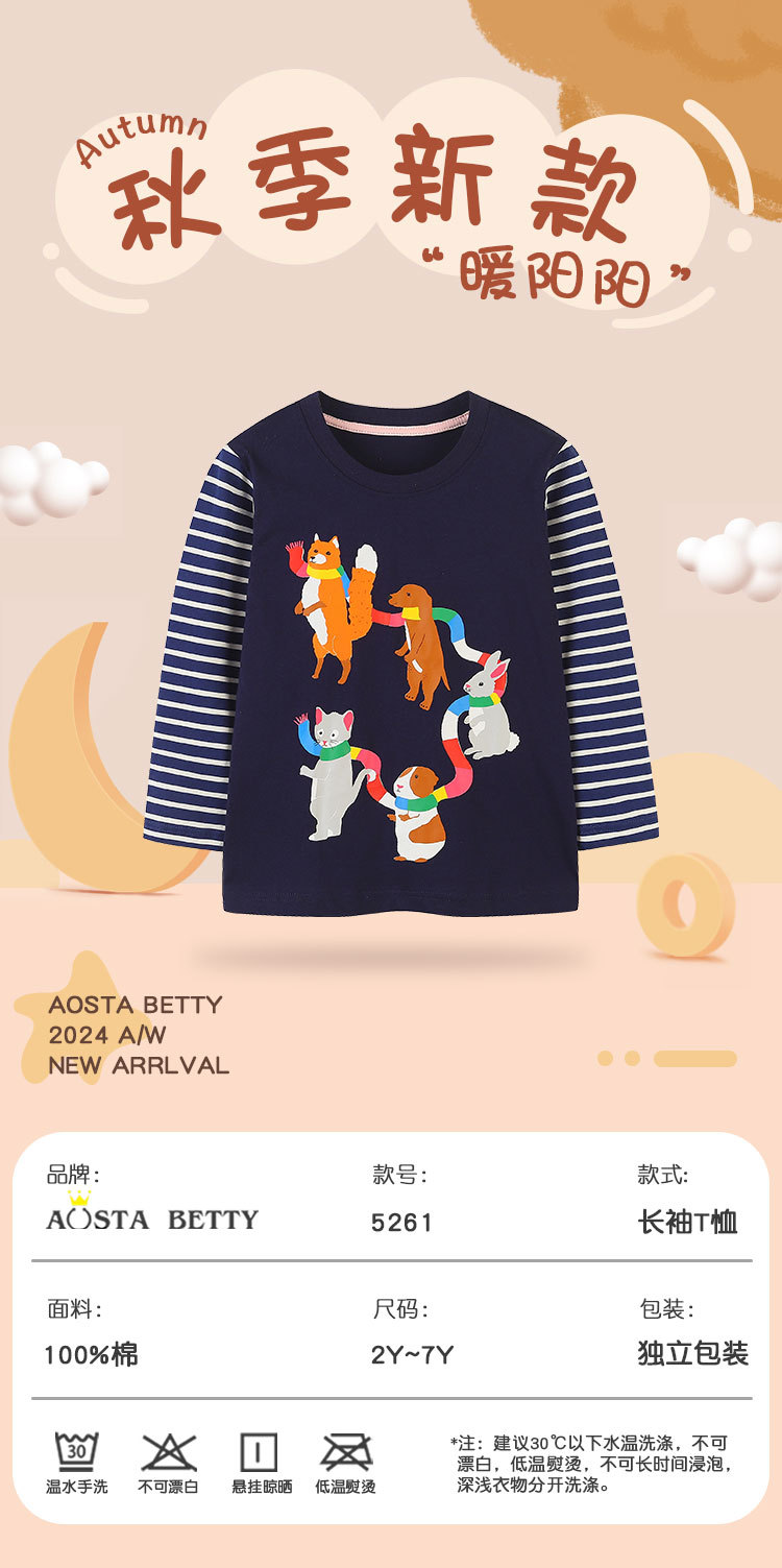 25 유럽풍 아동용 면 긴팔 티셔츠 가을 신상품 유아용 기본 셔츠 귀여운 프린트 상의스토어 가기