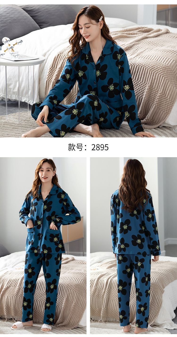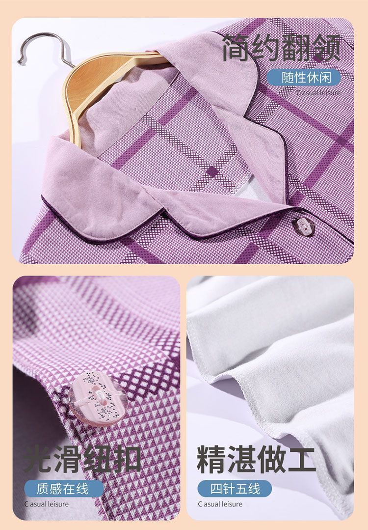 파자마 여자의 봄과 가을 2023 새로운 100% 면 긴 소매 격자 무늬 젊은 및 중년의 외부 착용 세트 옷스토어 가기