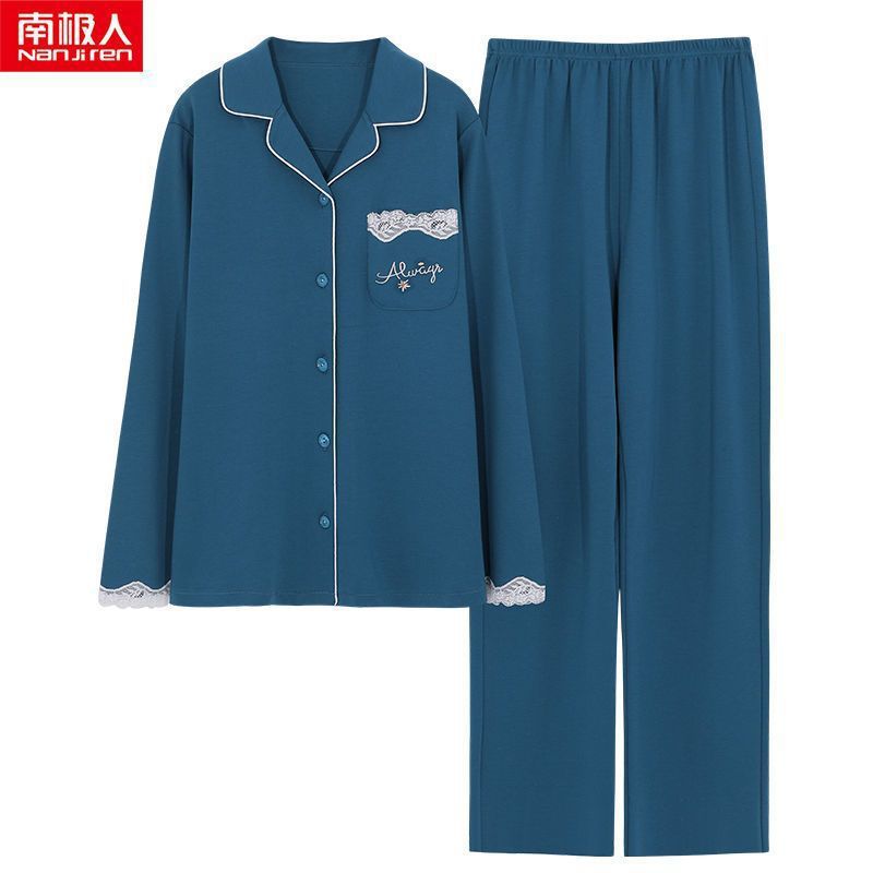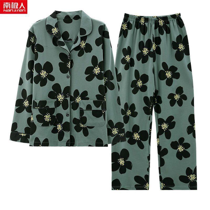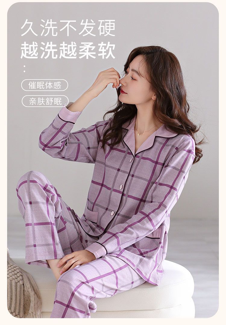 파자마 여자의 봄과 가을 2023 새로운 100% 면 긴 소매 격자 무늬 젊은 및 중년의 외부 착용 세트 옷