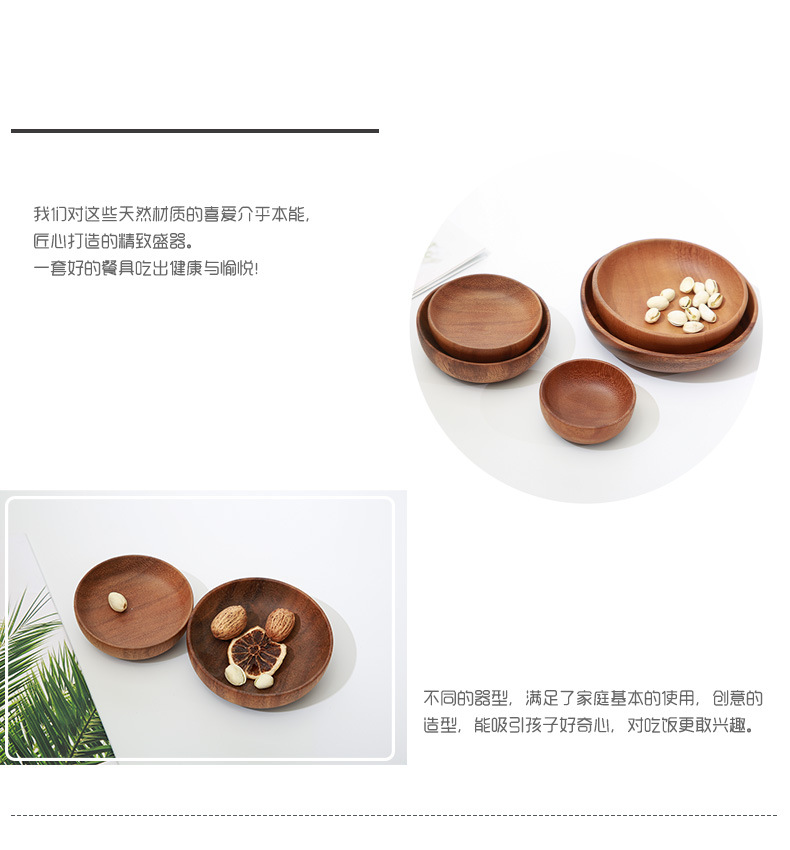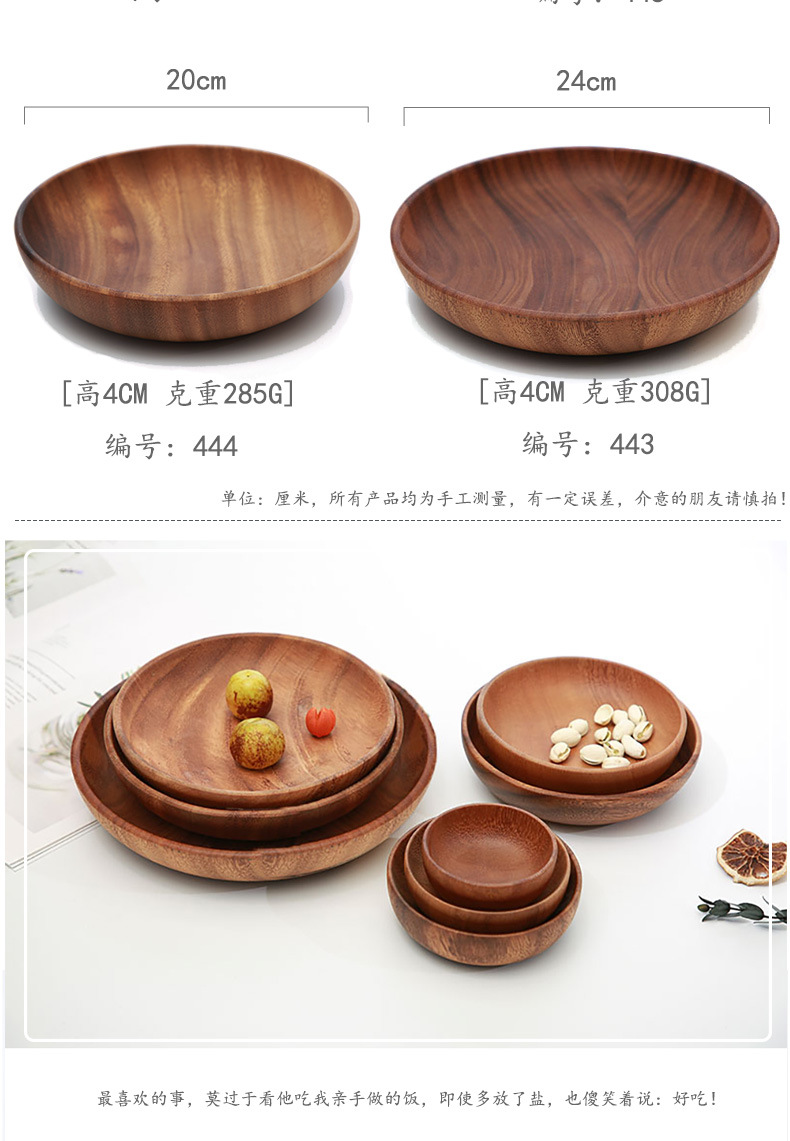 일본식 단단한 나무 원형 디너 플레이트 창조적 인 과일 접시 아카시아 나무 가정용 접시 멀티 사이즈 멜론과 과일 간식 나무 접시 조각스토어 가기