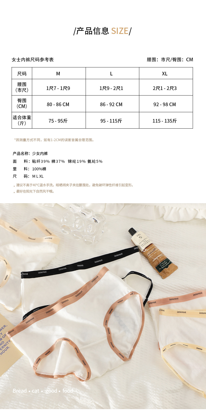 여름 새로운 소프트 5A 속옷 가랑이 면 항균 통기성 대비 색상 간단한 편지 허리 숙녀 브리프스토어 가기
