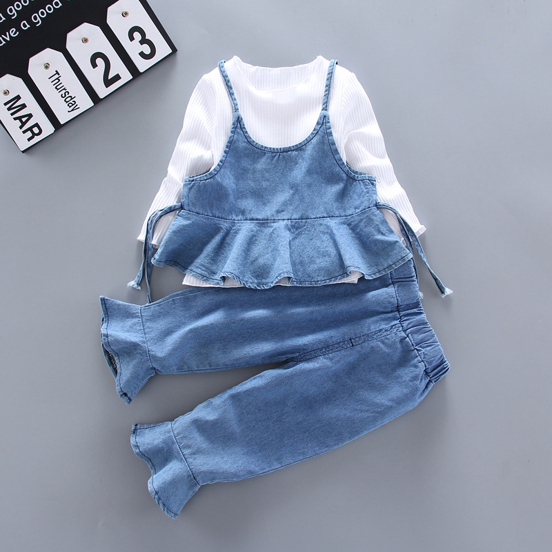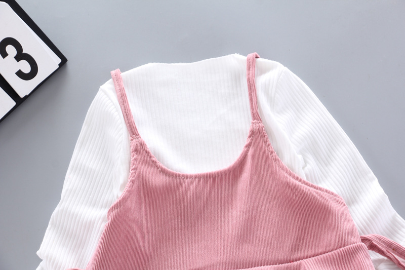 서양식 아동복 봄 아기의 봄 아동복 아기 소녀의 봄과 가을 세트 스트랩 스커트 소녀의 봄 의류 3 종 세트스토어 가기