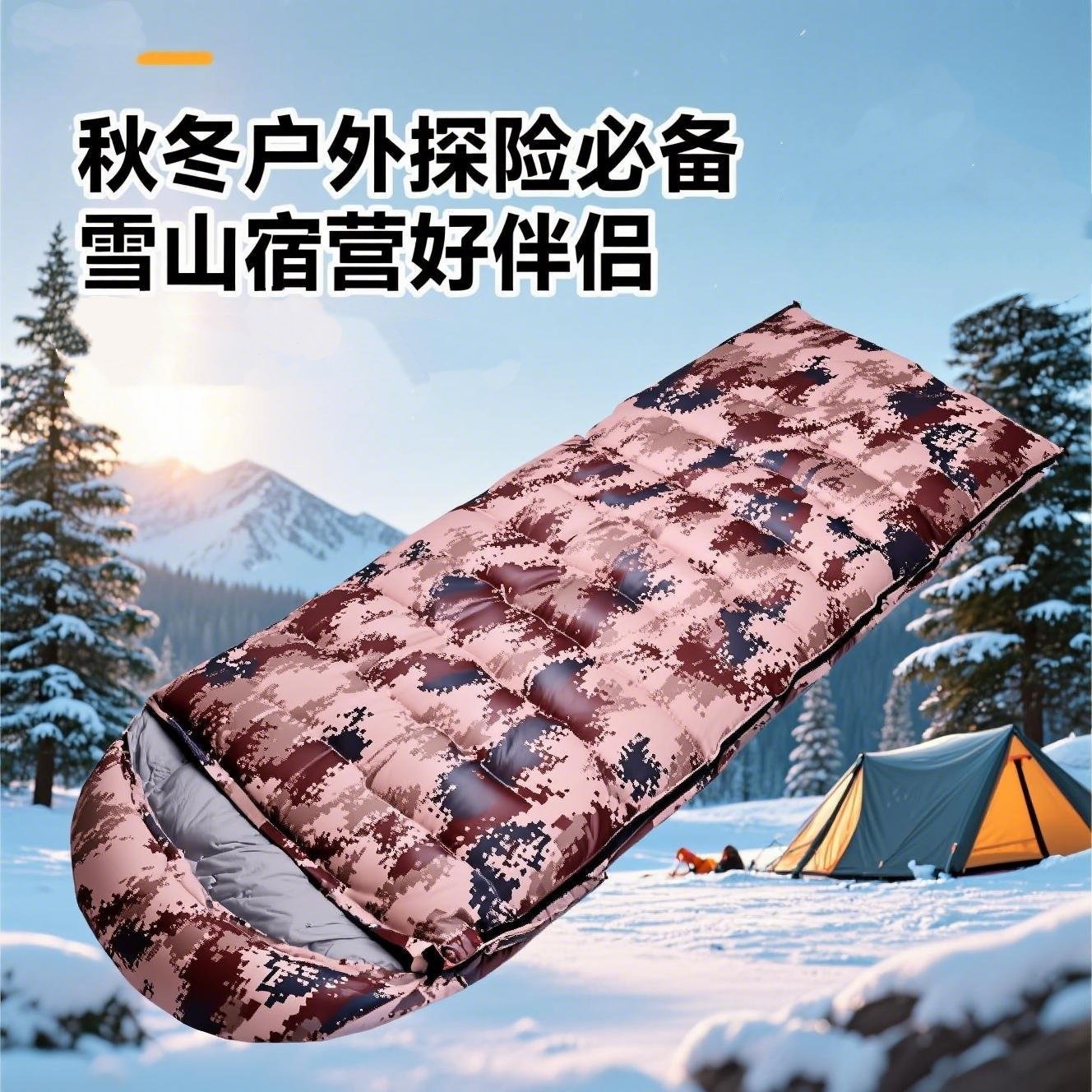 두꺼운 오리털 침낭, 사계절용, 실내 휴식, 캠핑, 위장무늬 다운 침낭, 야외 성인용 다운 침낭스토어 가기