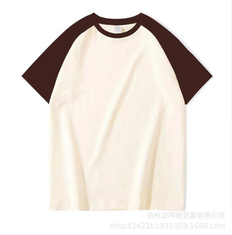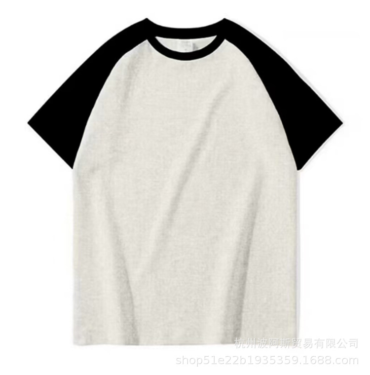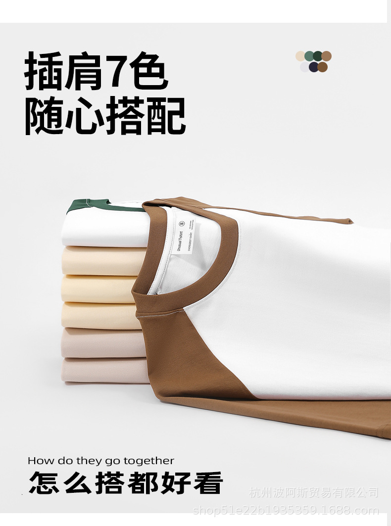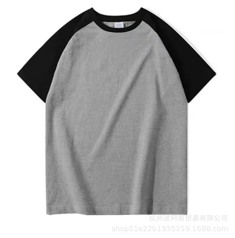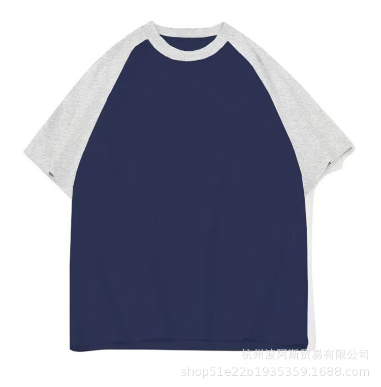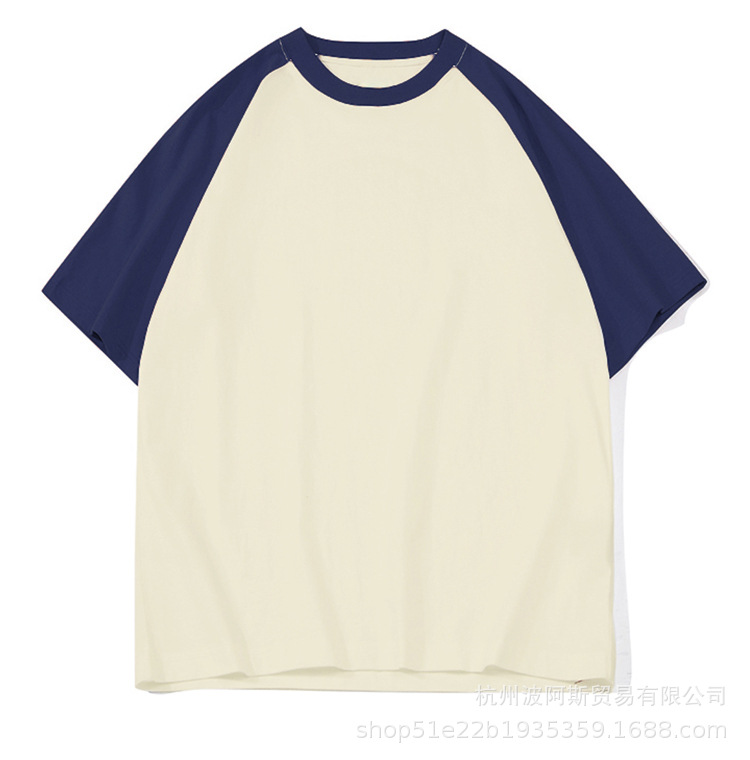라글란 긴팔 티셔츠 남성용 아메리칸 스타일 헤비 코튼 배색 커플 이너웨어 루즈핏 상의 도매 반팔