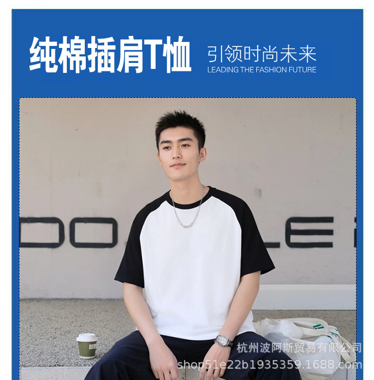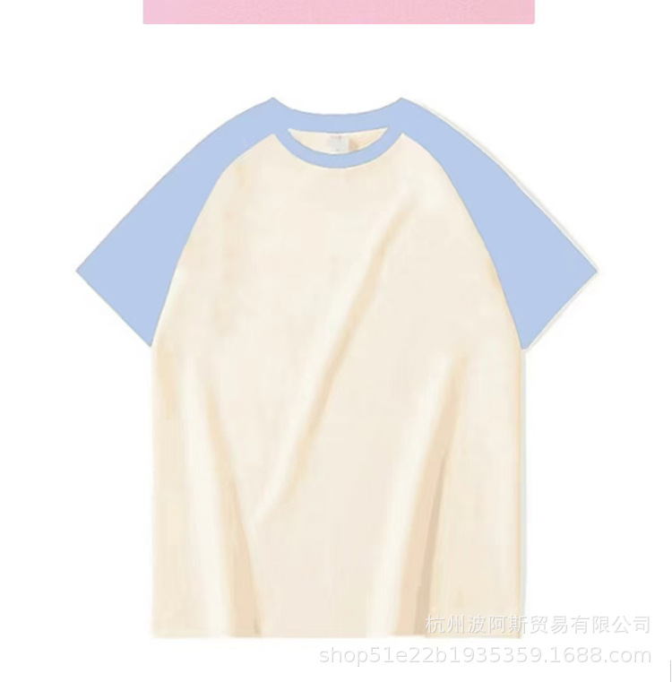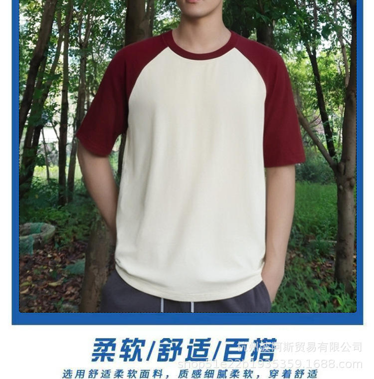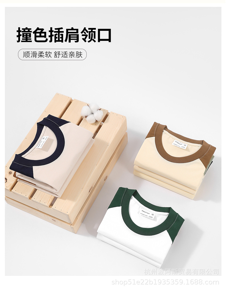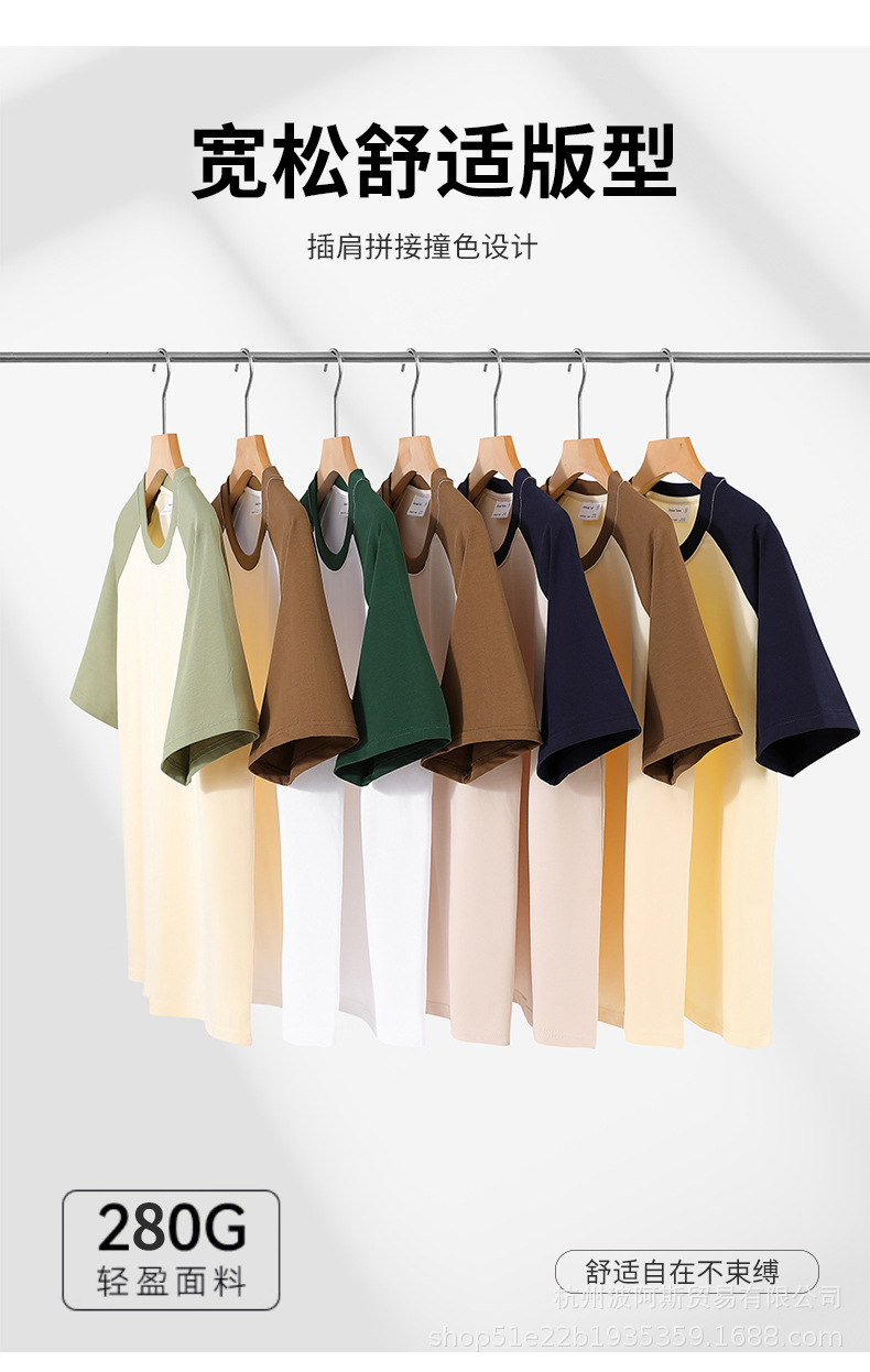 라글란 긴팔 티셔츠 남성용 아메리칸 스타일 헤비 코튼 배색 커플 이너웨어 루즈핏 상의 도매 반팔