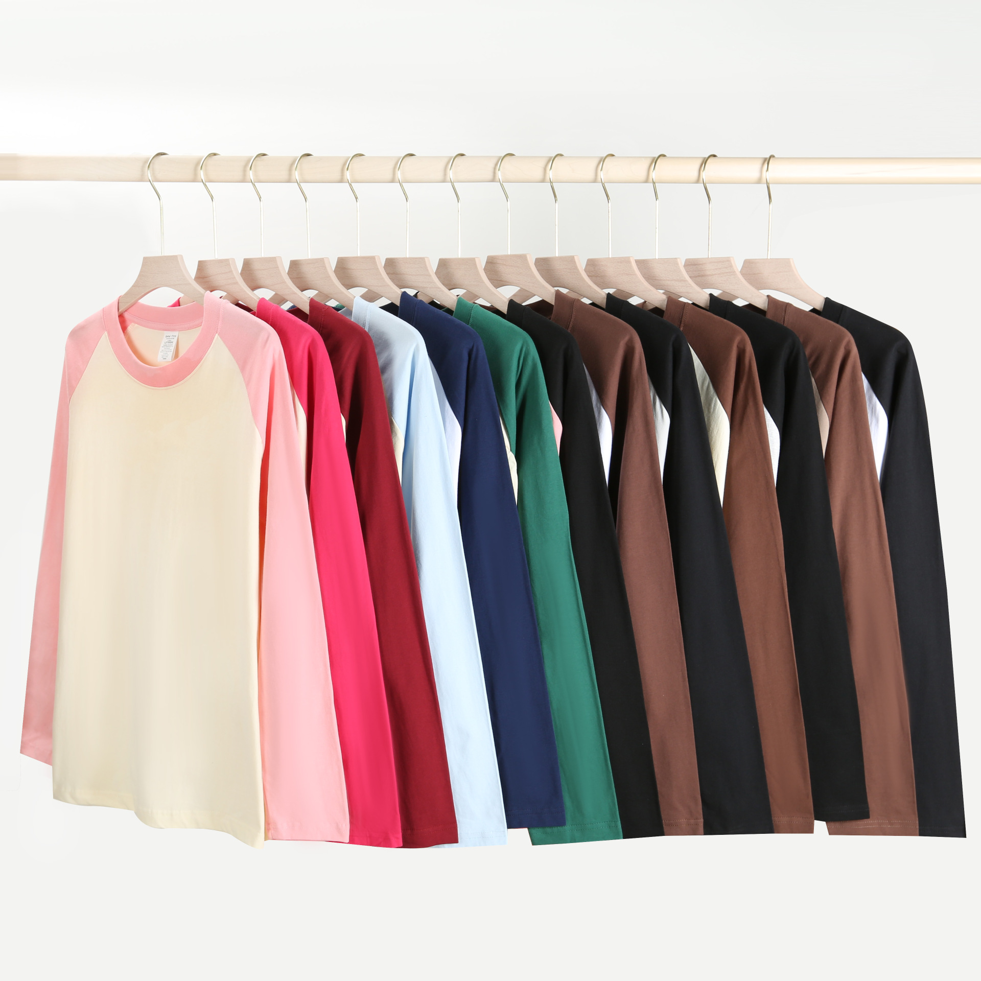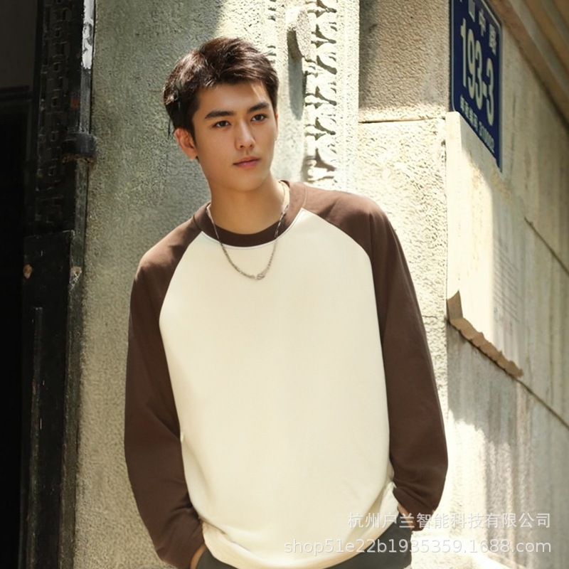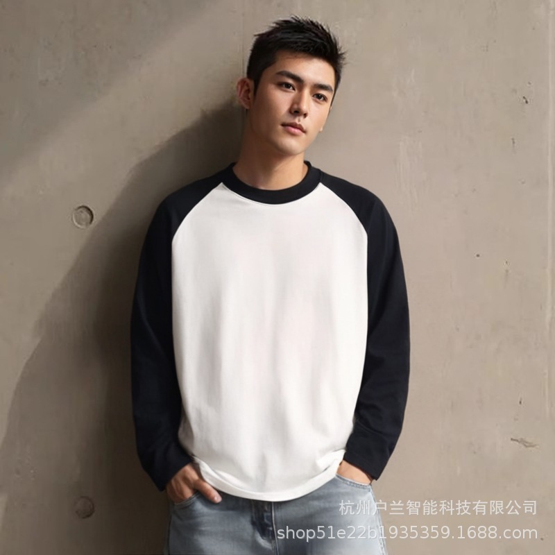 라글란 긴팔 티셔츠 남성용 아메리칸 스타일 헤비 코튼 배색 커플 이너웨어 루즈핏 상의 도매 반팔스토어 가기