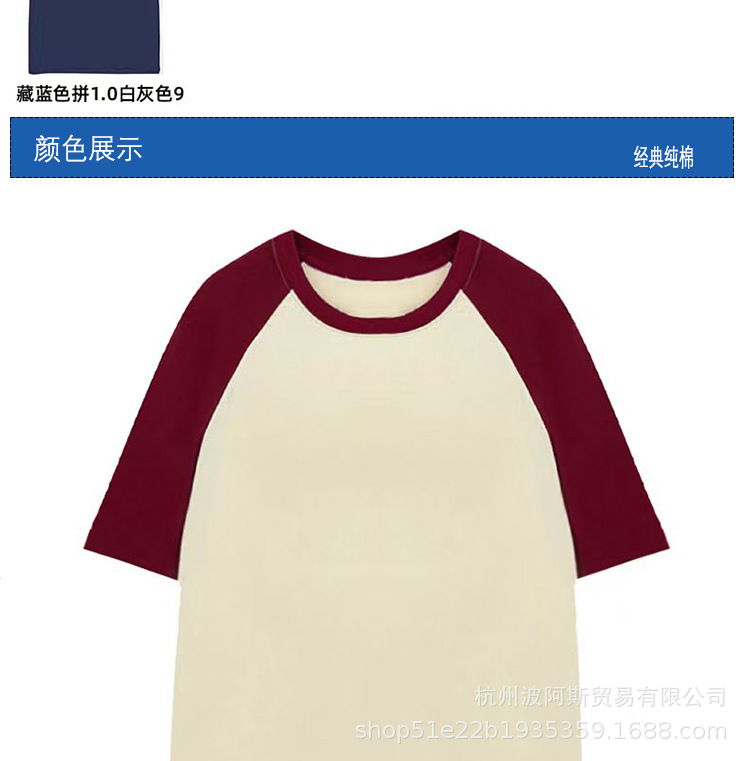 • 220g 컬러블록 래글런 반팔 살구 및 네이비 블루