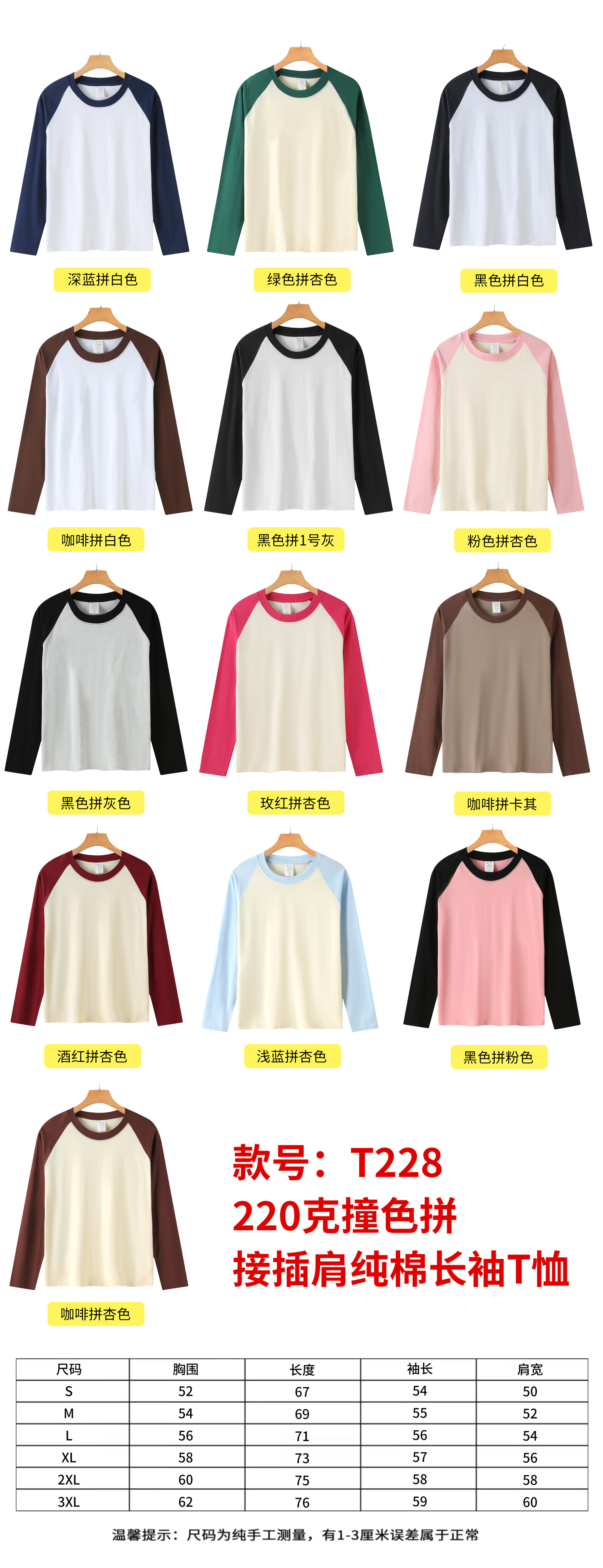 • 220g 배색 래글런 긴팔 티셔츠 (7가지 색상, 색상 별도 기재)