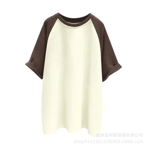 • 220g 컬러블록 래글런 반팔 살구 커피