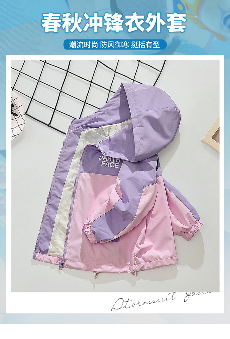 아동복 아동복 여아 봄 가을 코트 베이비 웨스턴 스타일 컬러 차단 탑 가디건 스포츠 후드 탑 트렌디스토어 가기