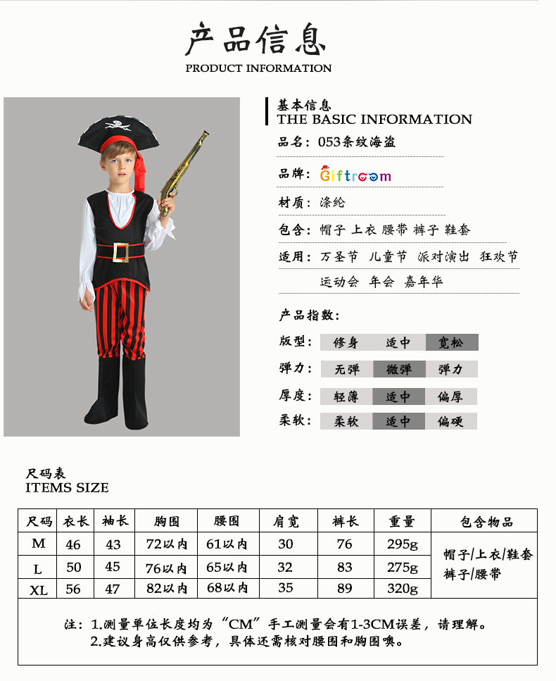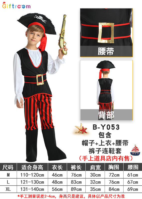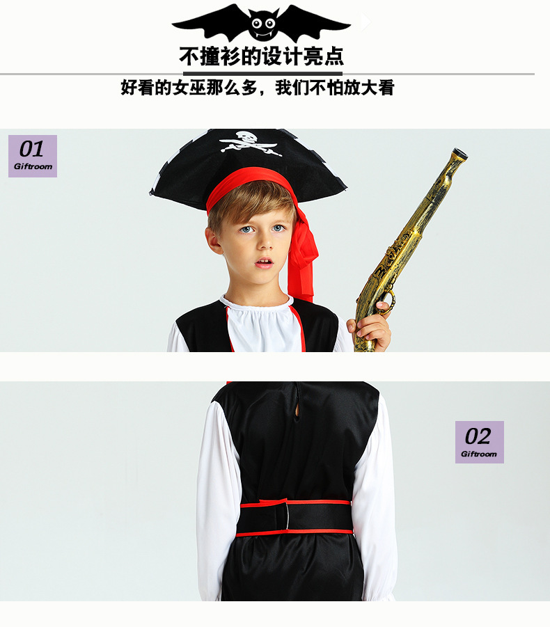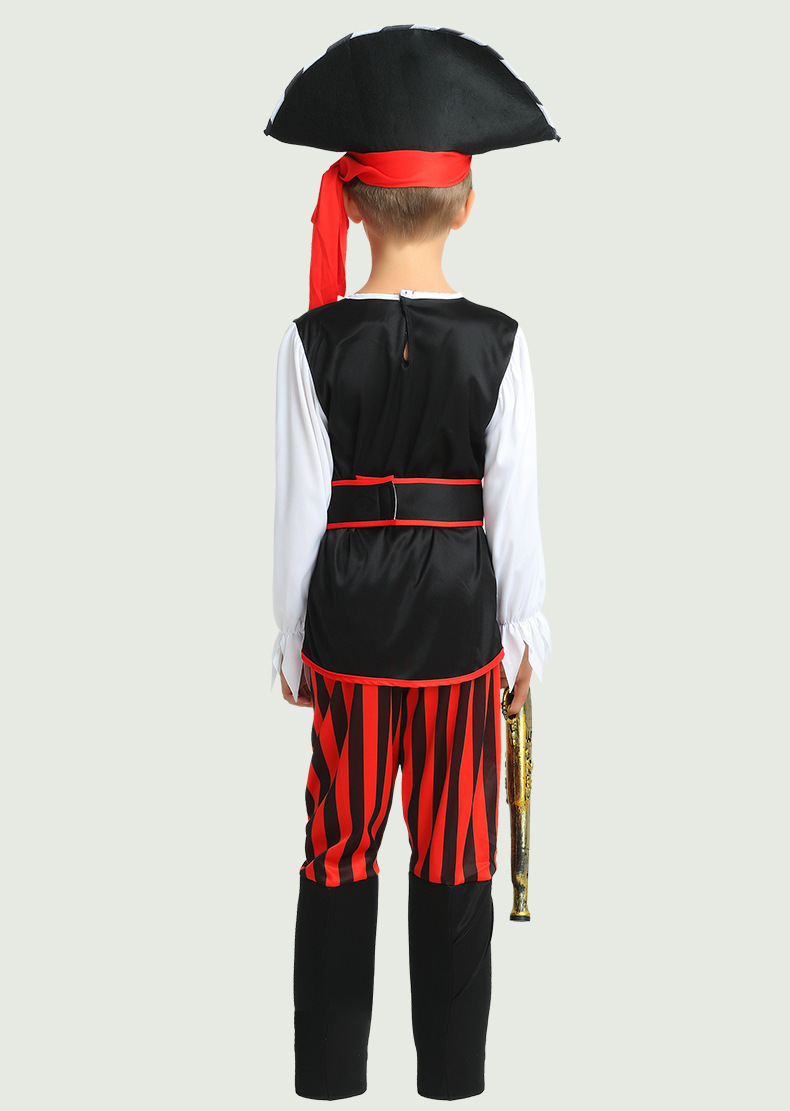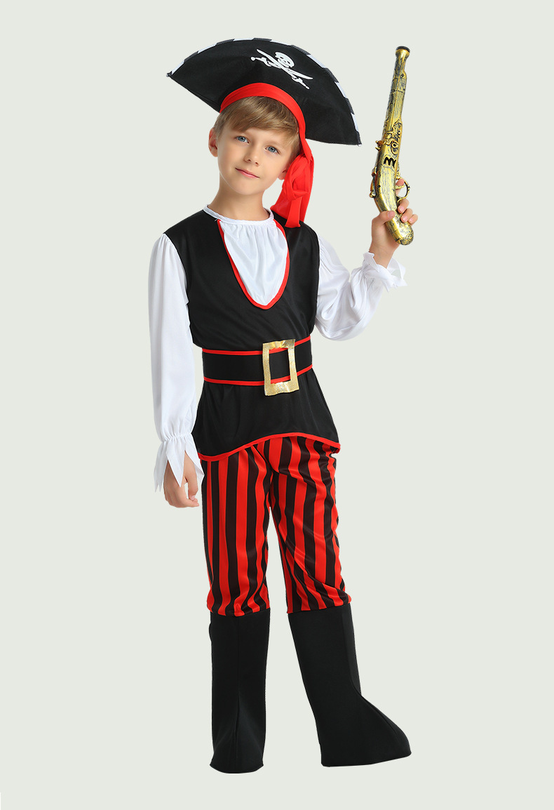 할로윈 카니발 파티 코스프레 키즈 레드와 블랙 스트라이프 해적 원피스 원피스 업 쿨 의상