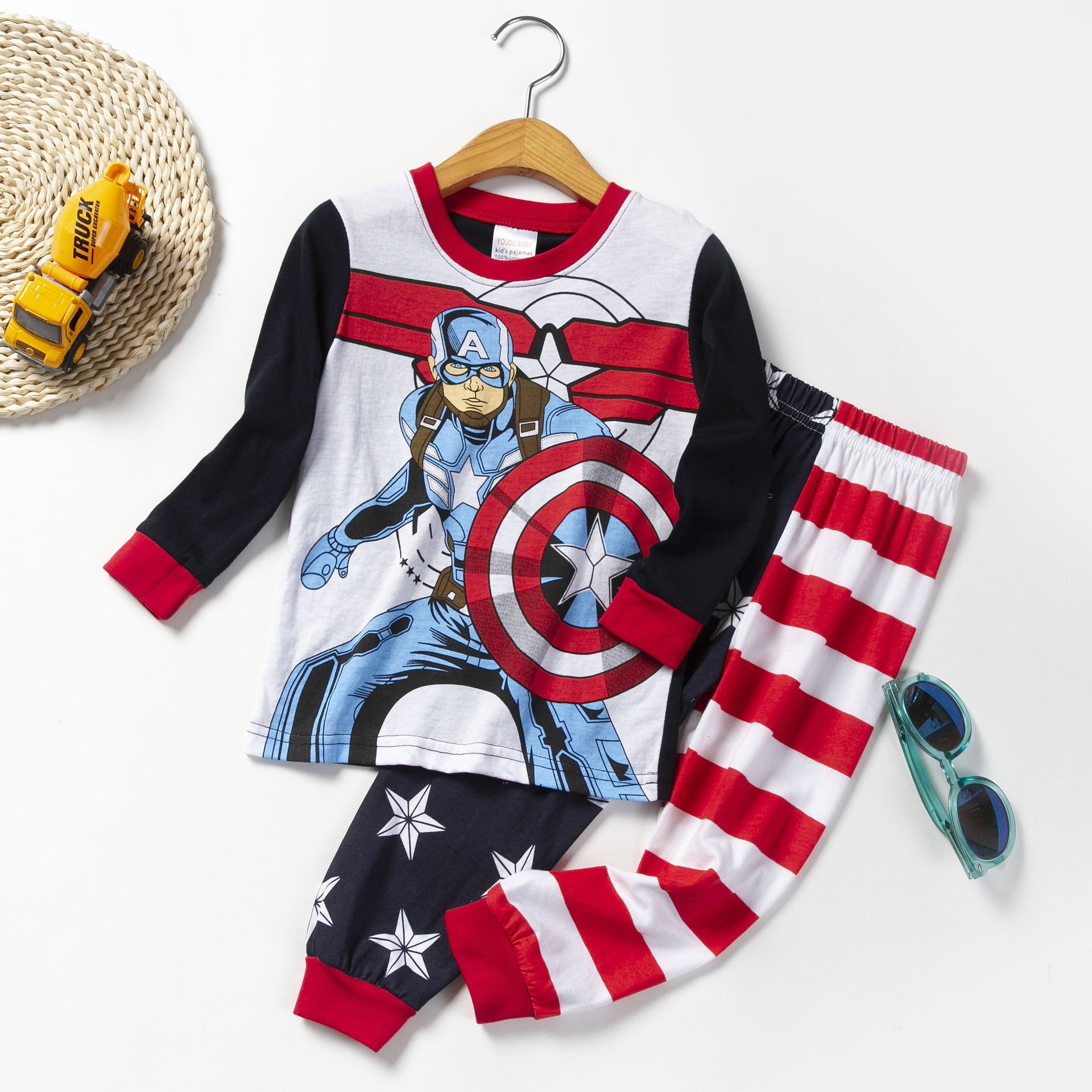 새로운 어린이 잠옷 소년 면화 긴 소매 아동 의류 소년과 어린이의 가정 옷 세트 세대의 머리카락
