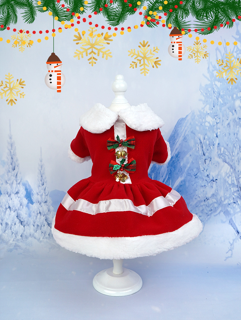 새로운 두꺼운 크리스마스 애완 동물 의상 산타 클로스 빨간 종 인형 칼라 원피스 공장 스트레이트