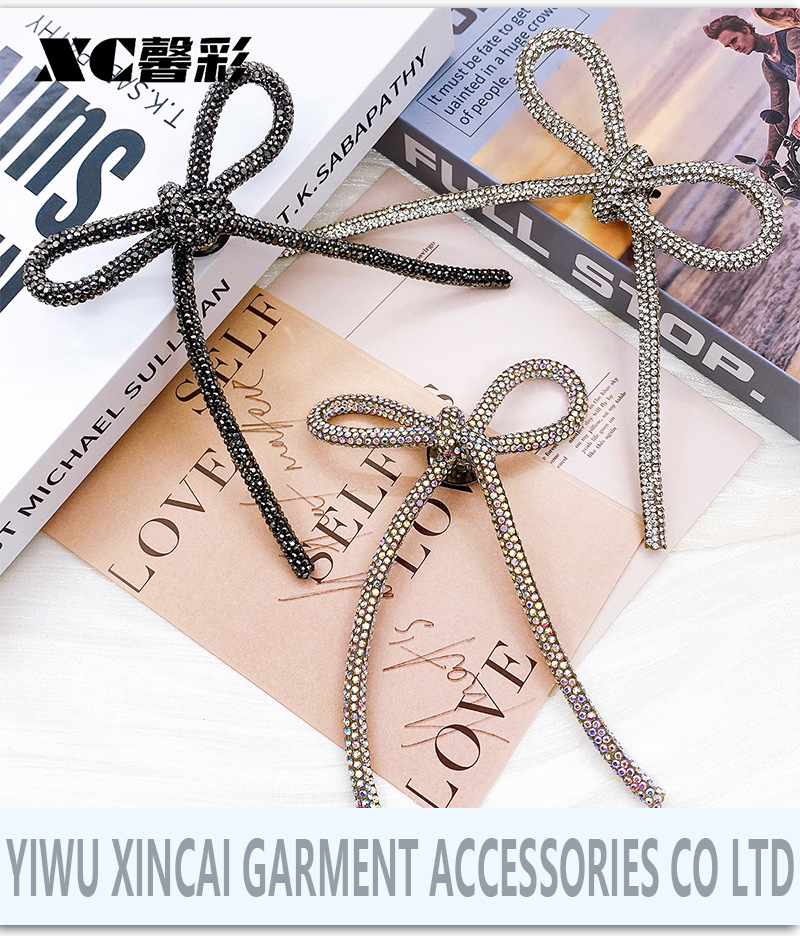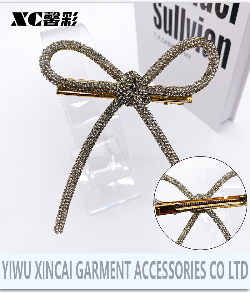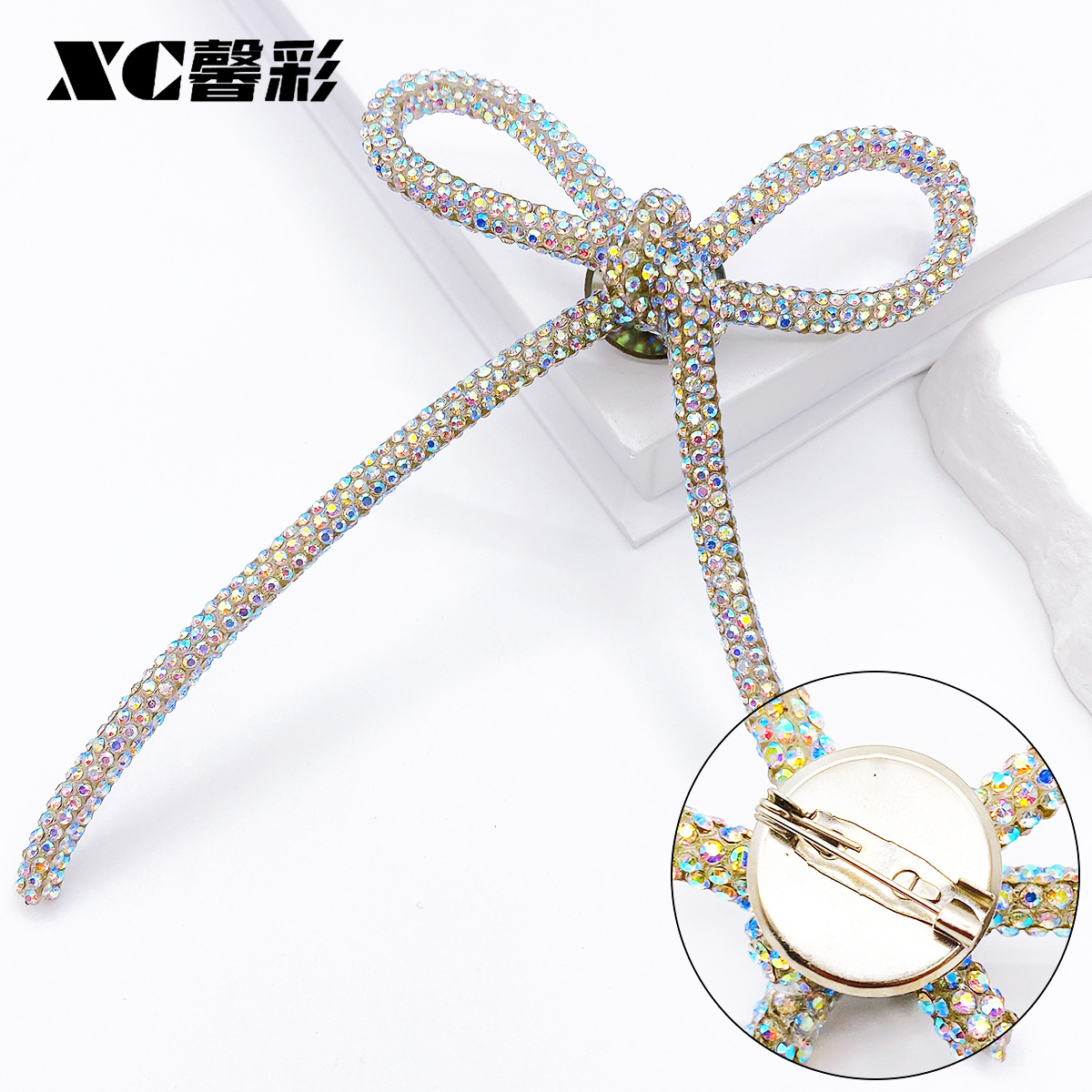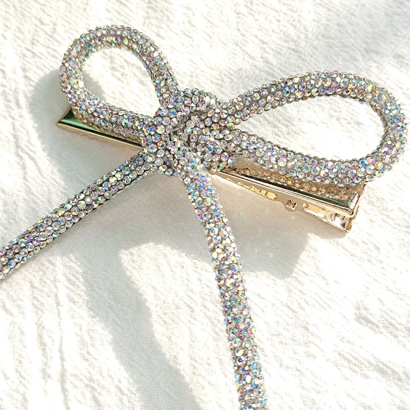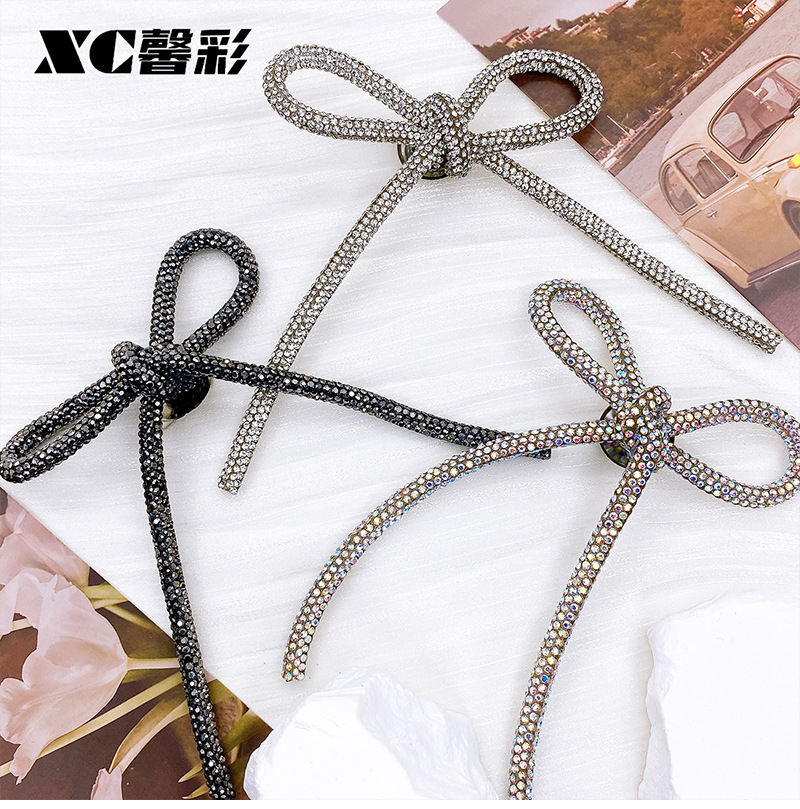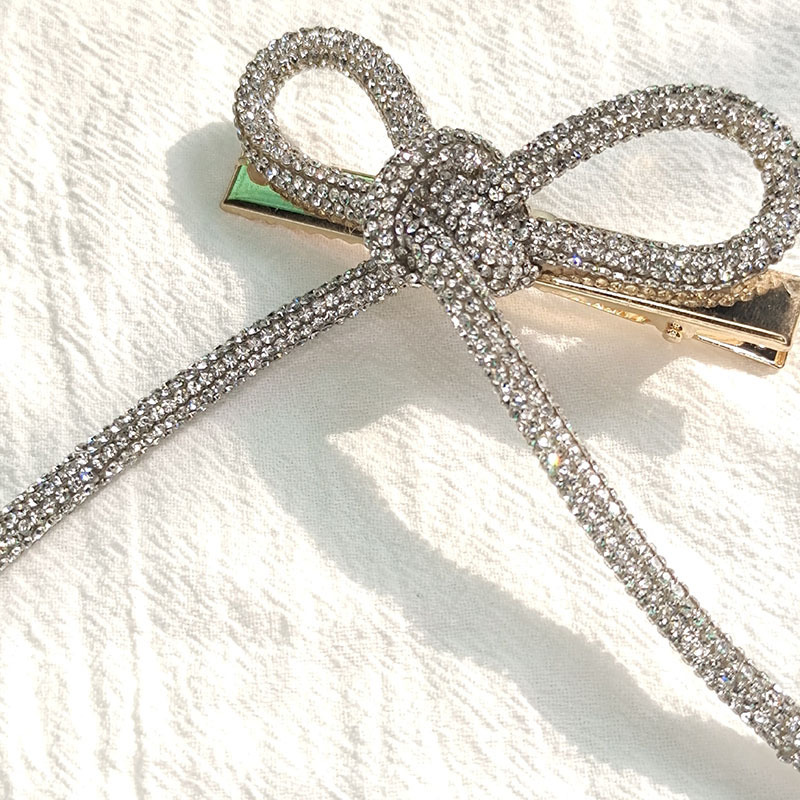 크로스보더 헤어핀 브로치, 라이트 럭셔리, 고급스러운 느낌, 풀 다이아몬드, 나비 리본, 리본 장식, 덕빌 클립, 패셔너블한 앞머리 클립, 사이드 클립