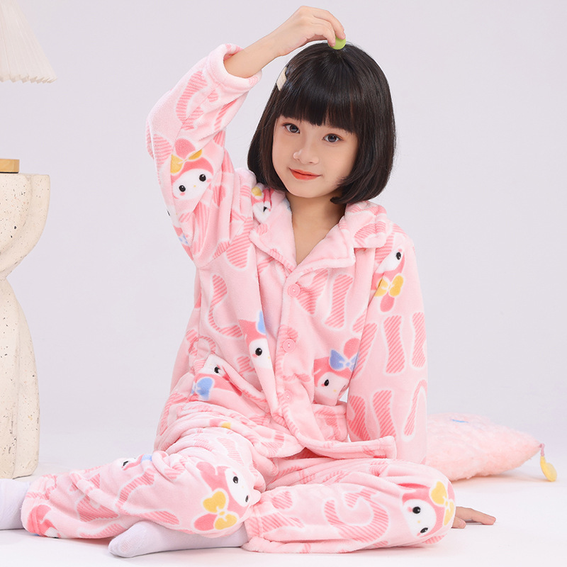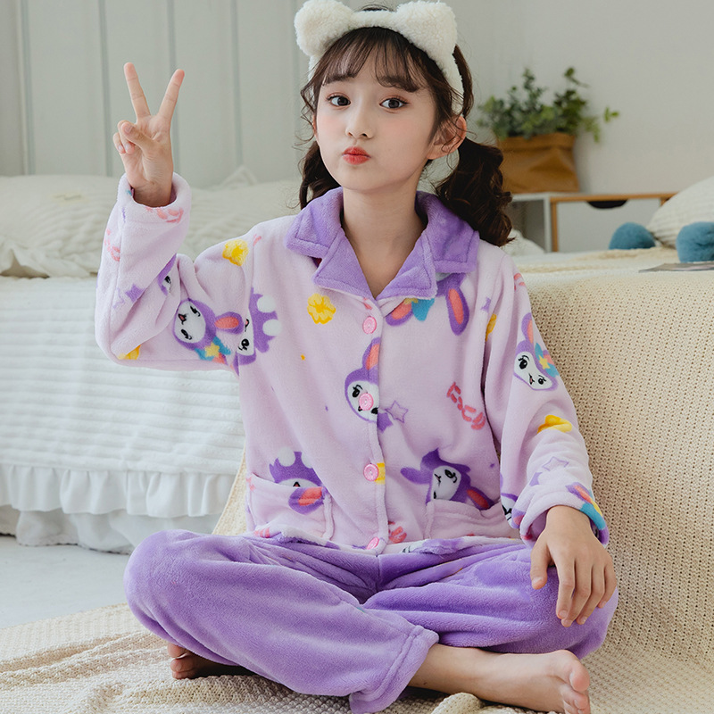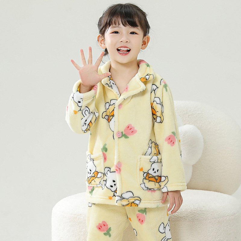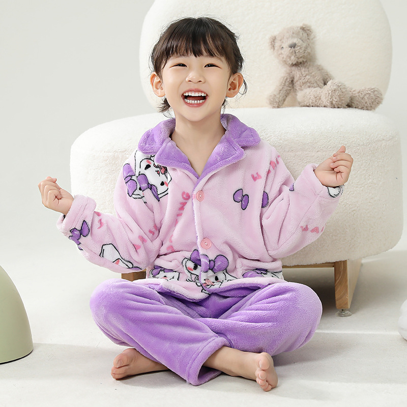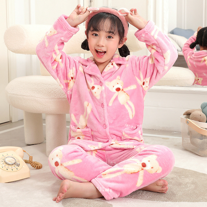 어린이 잠옷 플란넬 가정 의류 가을과 겨울 옷 남학생 산호 벨벳 아기의 중간 및 큰 어린이 두꺼운 세트스토어 가기