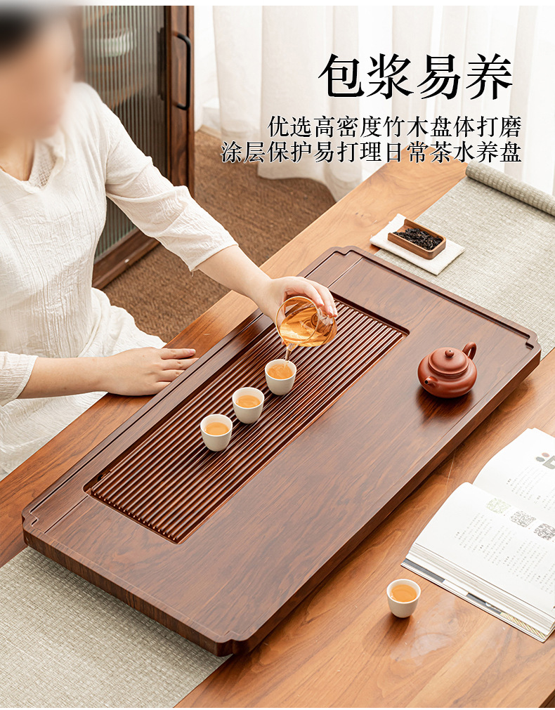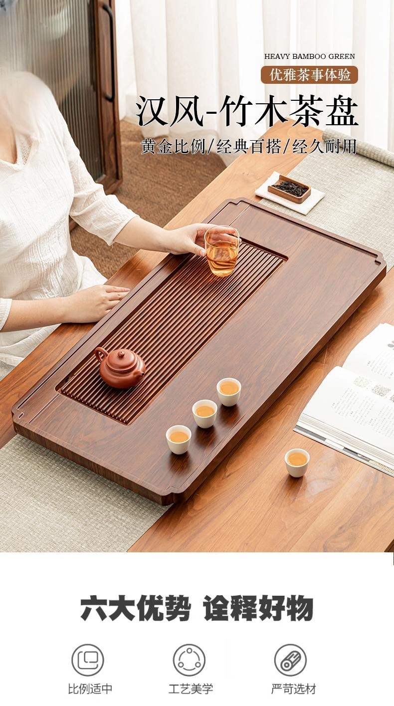 새로운 중국 스타일 대나무와 나무 대나무 티 트레이 가정용 차 세트 세트 전체 차 바다 배수 및 물 저장 작은 차 테이블 대나무 트레이