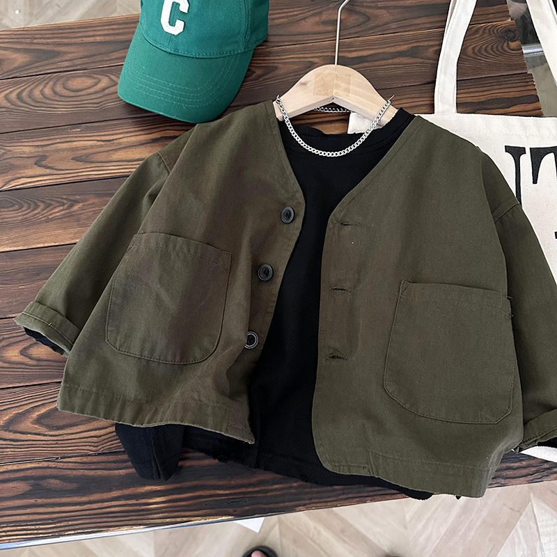 남아 코트 한국 스타일 봄 가을 2023 새로운 아동 자켓 웨스턴 스타일 아기 소녀 탑 모든 매치 캐주얼 웨스턴 스타일 트렌디스토어 가기
