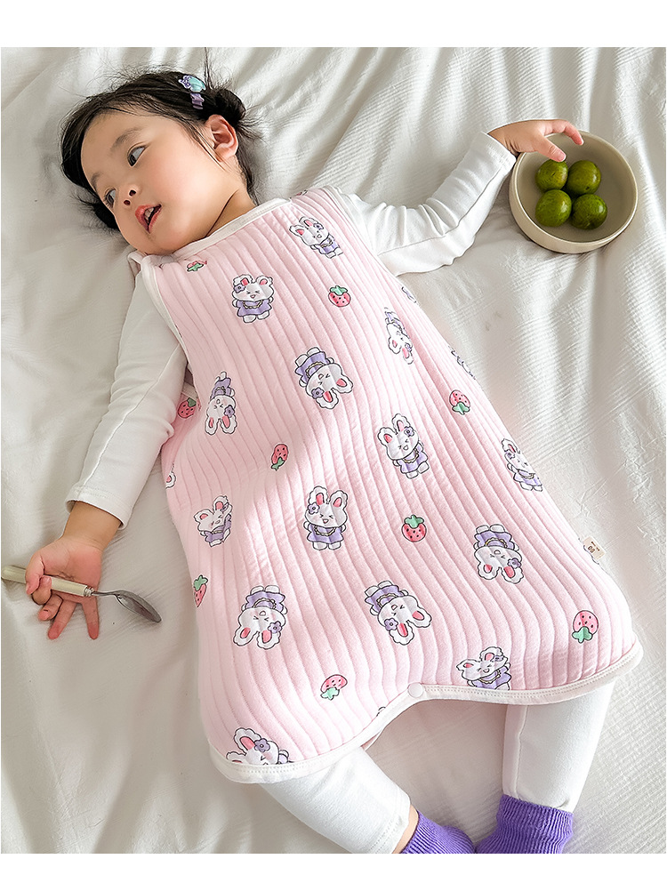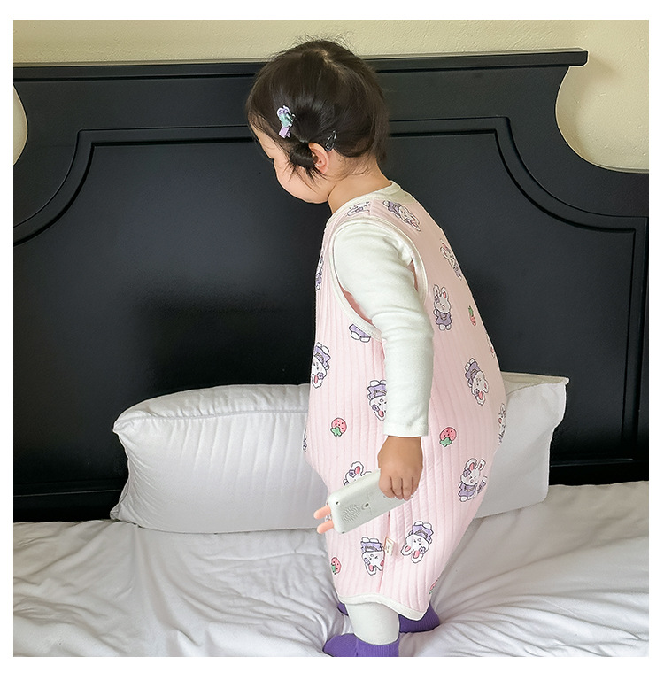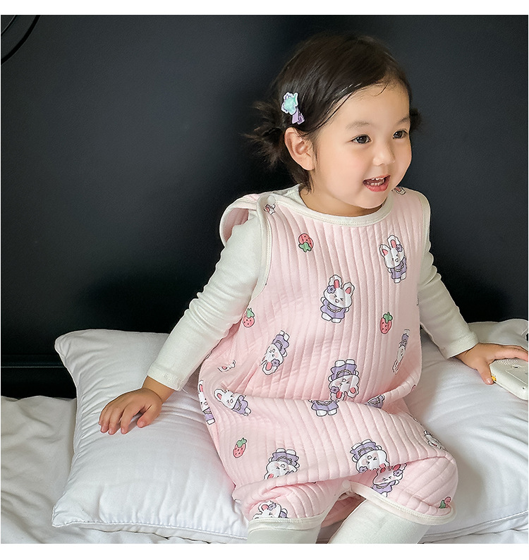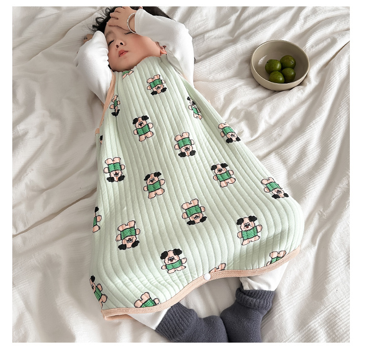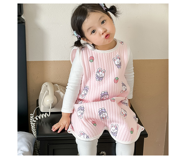 봄과 가을 아기 누비 민소매 침낭 순면 어린이 배 보호 도구는 감기와 발차기를 방지하고 배를 보호합니다.