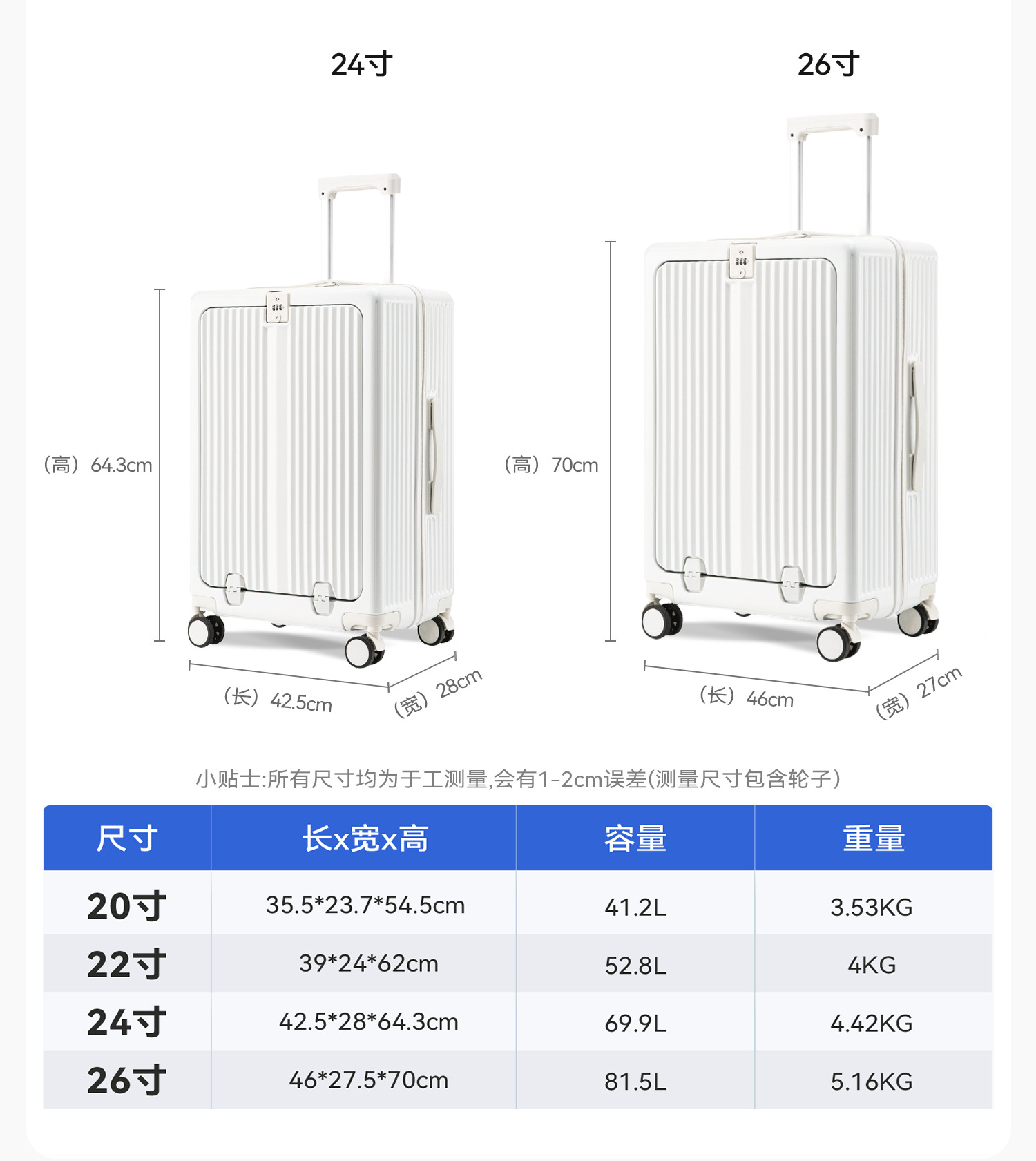 Yong Sheng 전면 오픈 뚜껑 수하물 20 인치 탑승 상자 새로운 건식 가방 유니버설 휠 24 인치 비밀번호 수하물 케이스 안티 폴스토어 가기