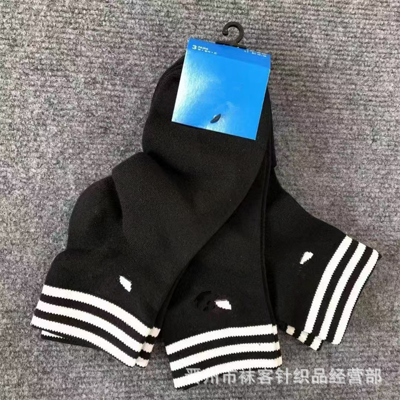 3 쌍 흑백 스포츠 양말 미드 하이 트렌디 양말 3 잎 3 방향 바 면 양말 학생 양말 십대 대학 스타일 양말스토어 가기