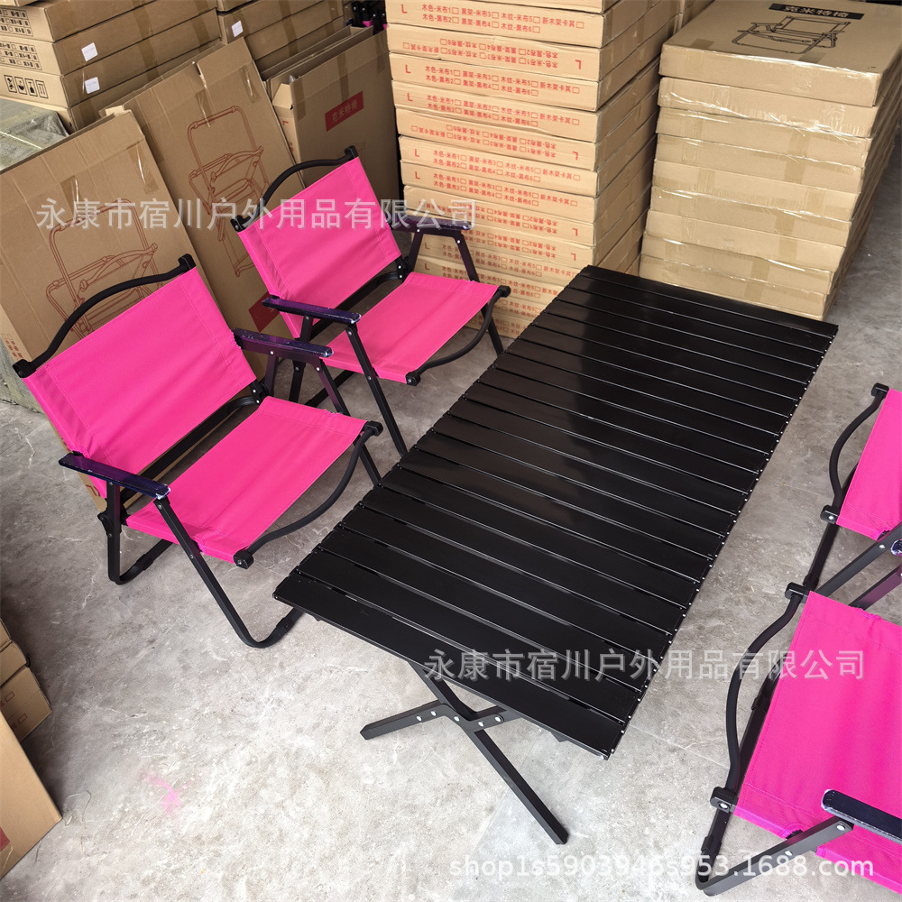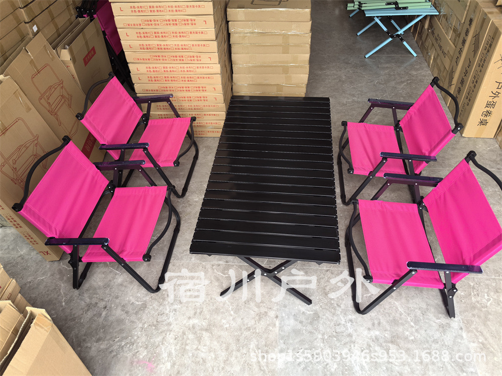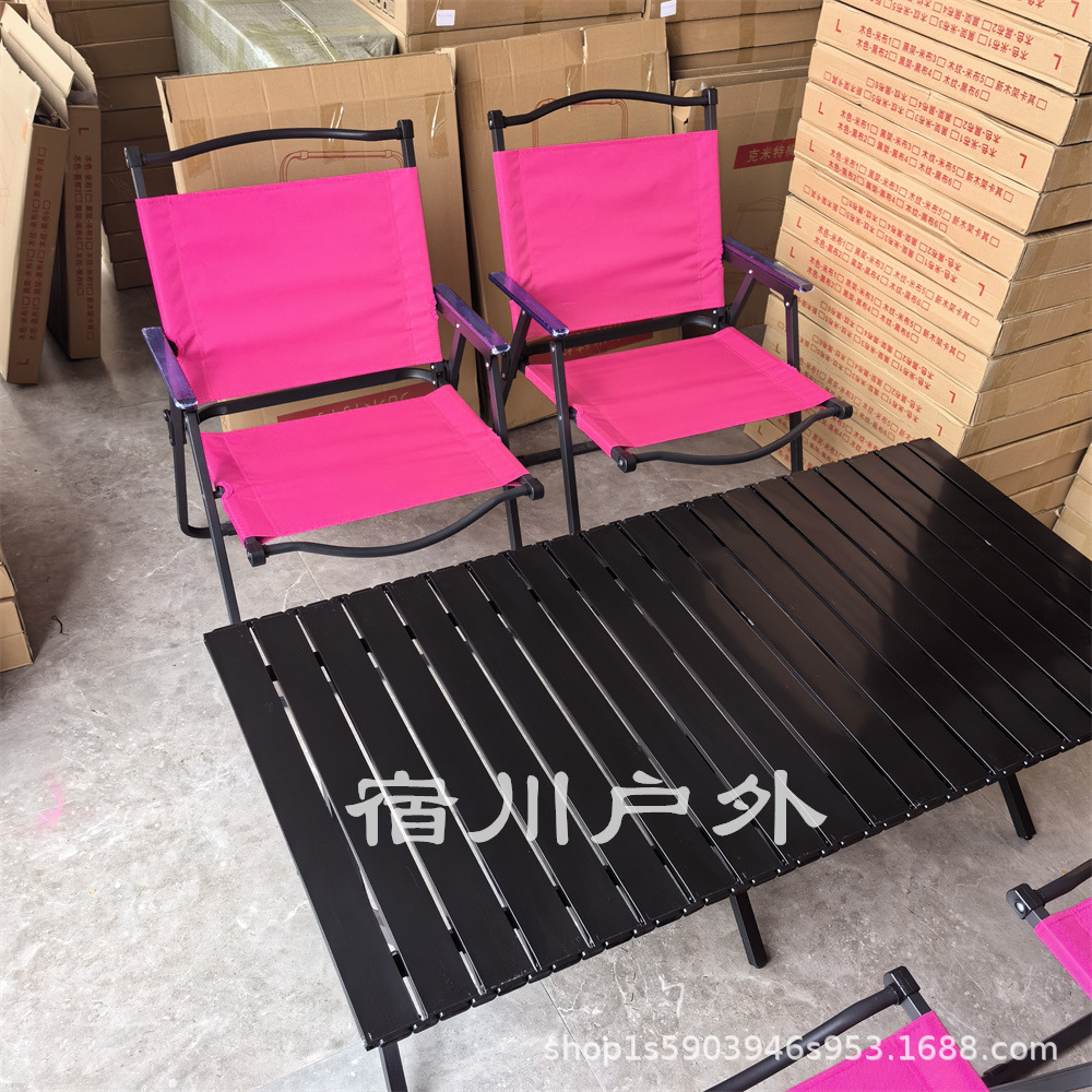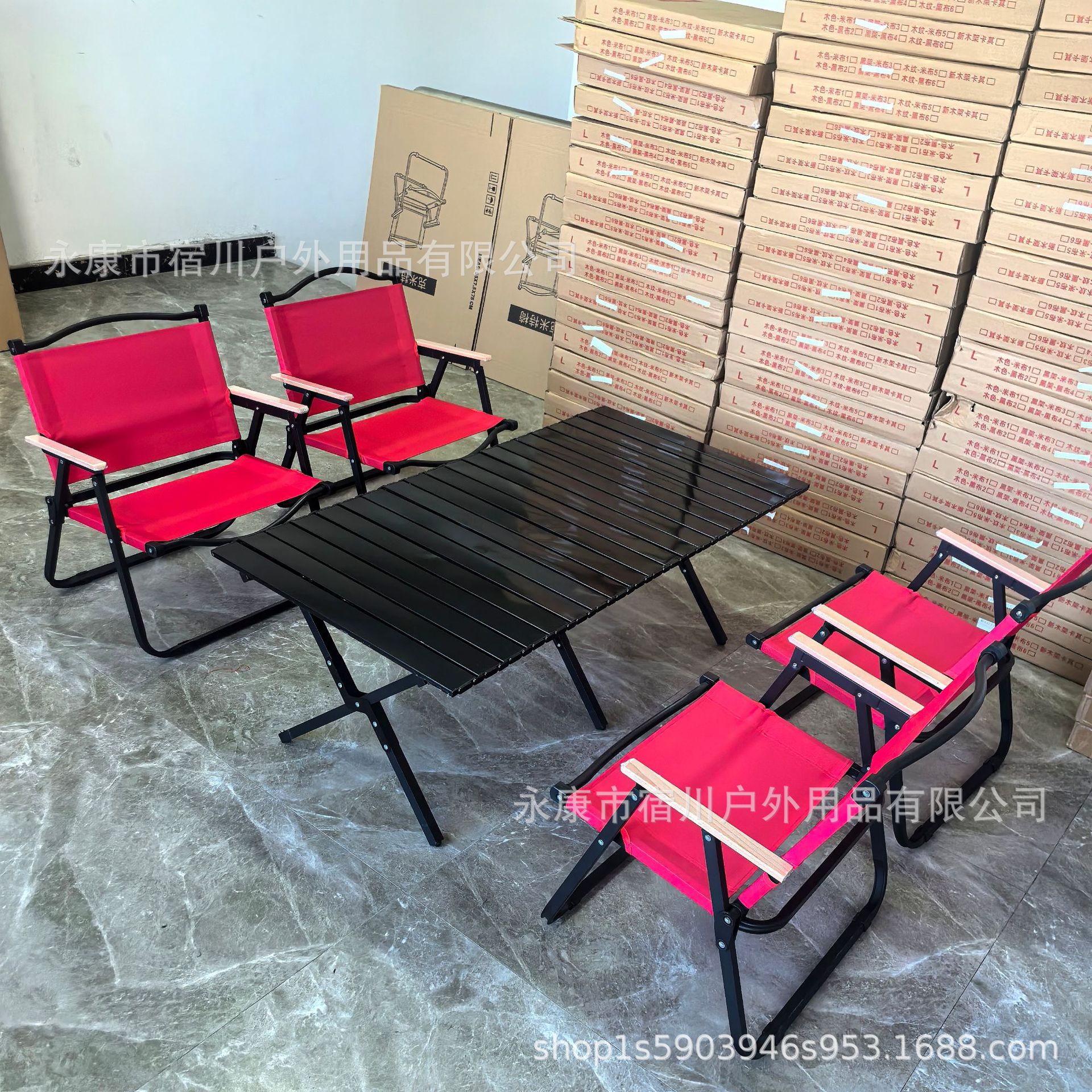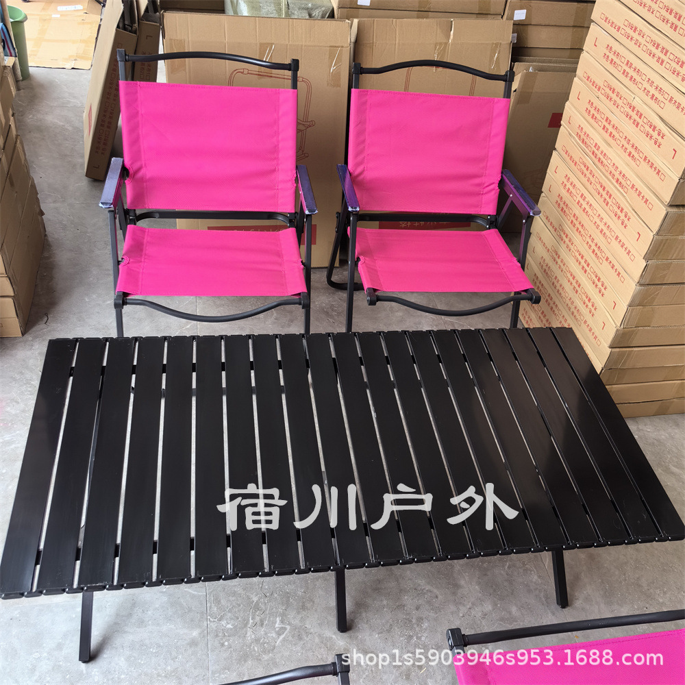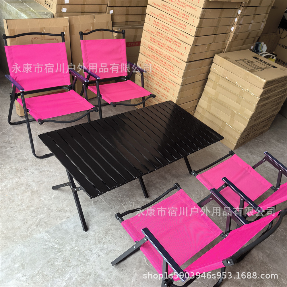 블랙 계란 롤 테이블 로즈 레드 의자 높은 탄소 강철 야외 접이식 테이블과 의자 세트 캠핑 레저 인쇄 가능스토어 가기