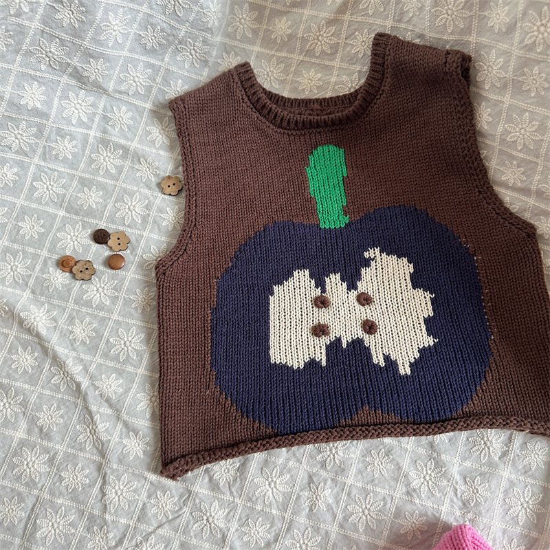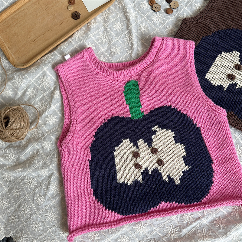 Xi Fan Chunqiu 새로운 어린이 한국 만화 대비 컬러 니트 조끼 소녀 아기 사과 민소매 조끼