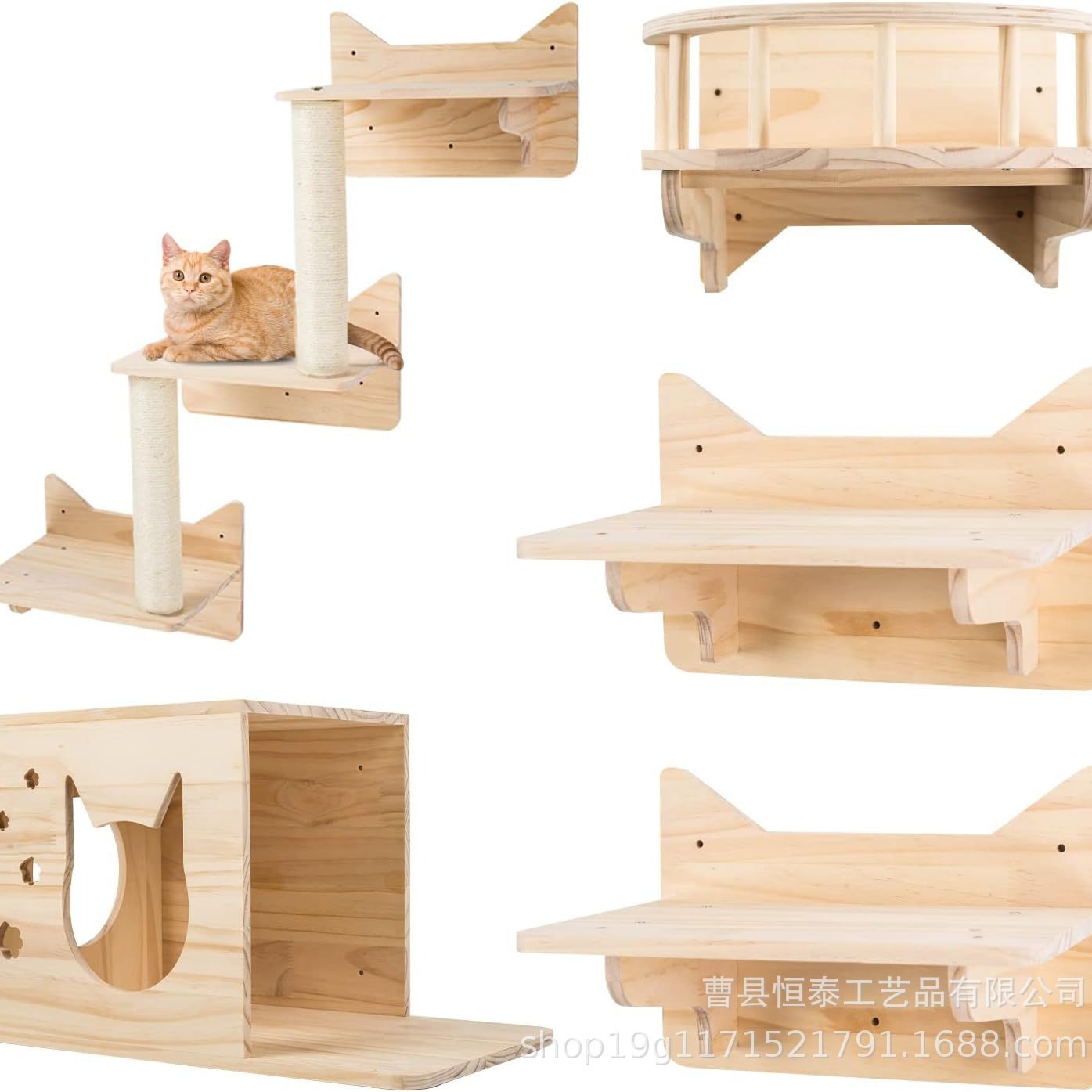 猫爬架墙壁式实木猫爬板楼梯式剑麻绳壁挂式木制猫咪玩具猫窝吊床  cat diy  猫吊床  猫窝一体