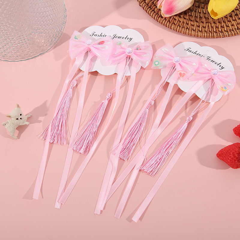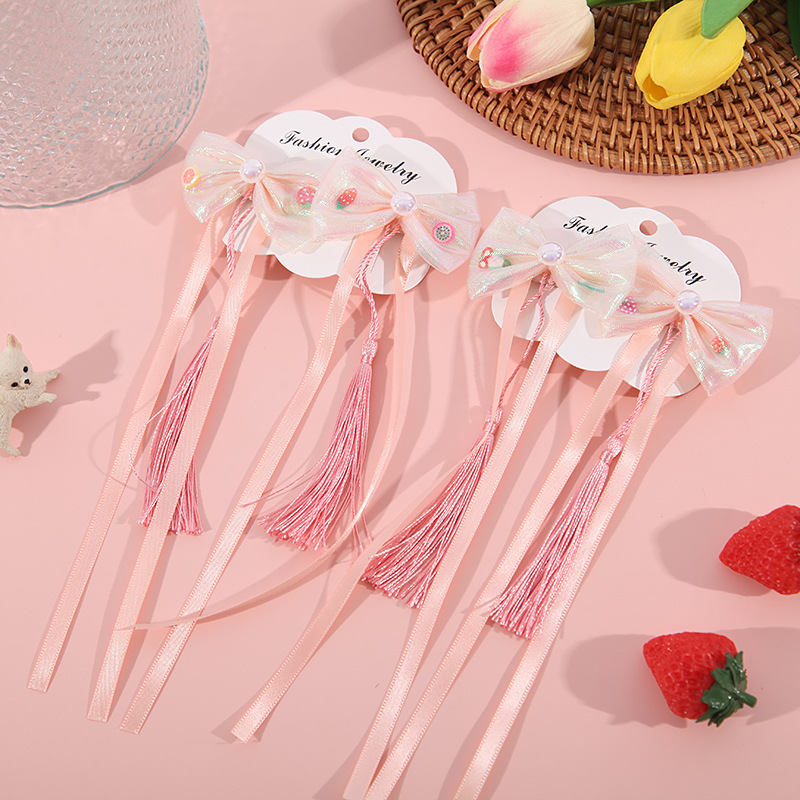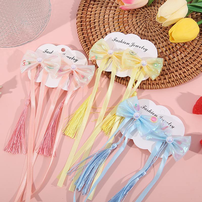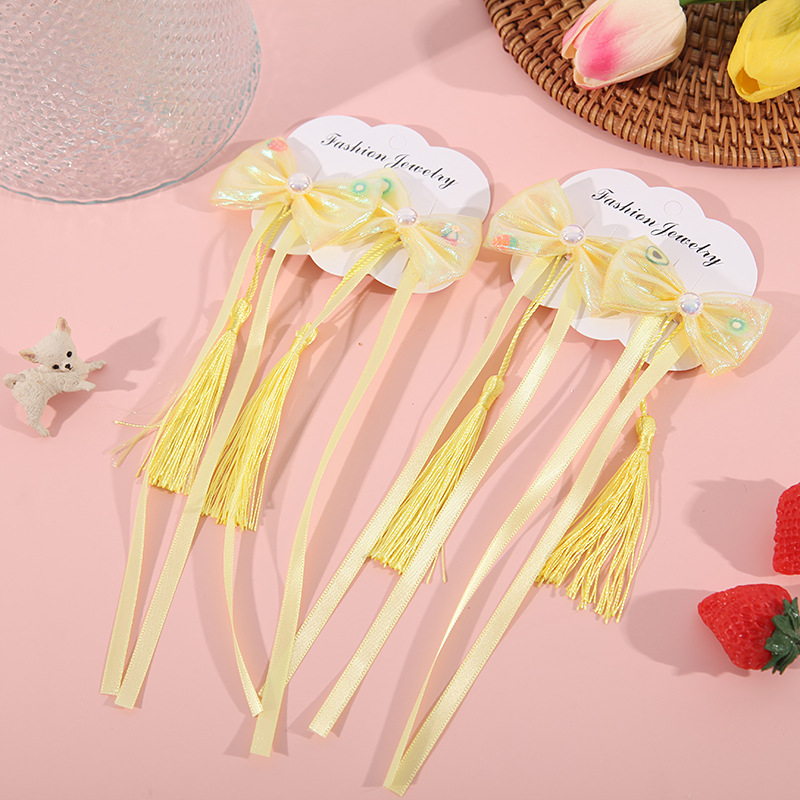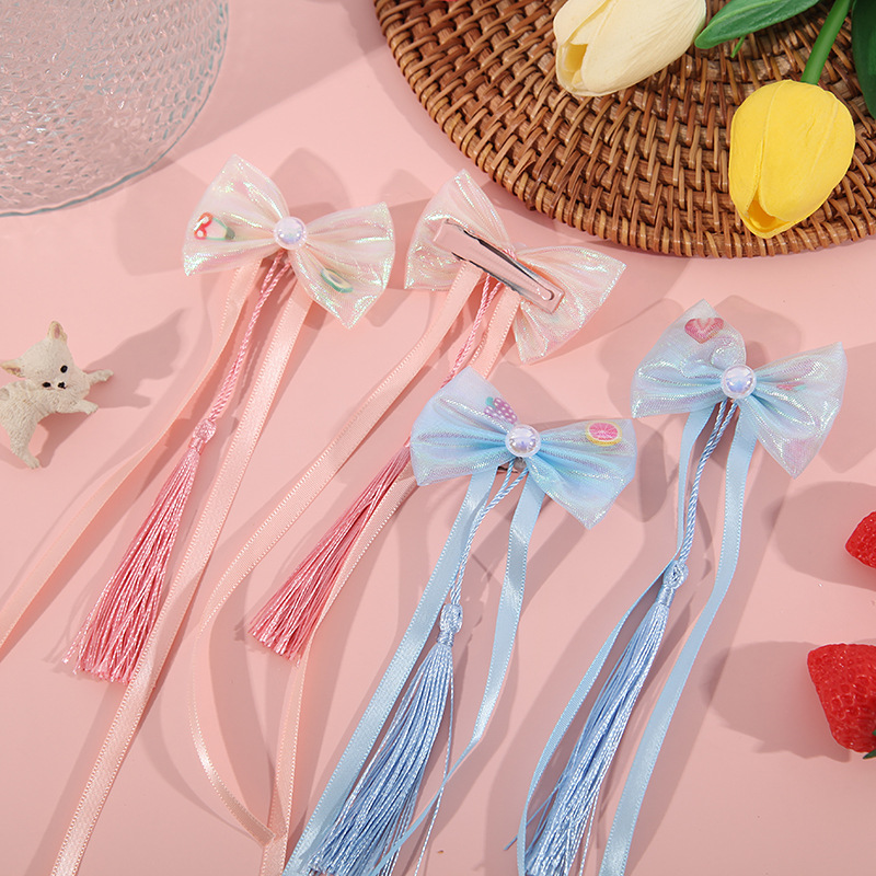 진주 활 머리핀 어린이 술 리본 머리핀 귀여운 신선한 리본 공주 골동품 오리 부리 클립 모자