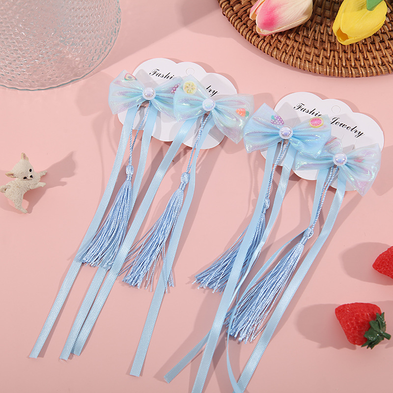 진주 활 머리핀 어린이 술 리본 머리핀 귀여운 신선한 리본 공주 골동품 오리 부리 클립 모자스토어 가기