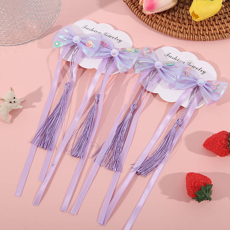 • 4 # 보라색 진주 활 머리핀 (한 쌍)