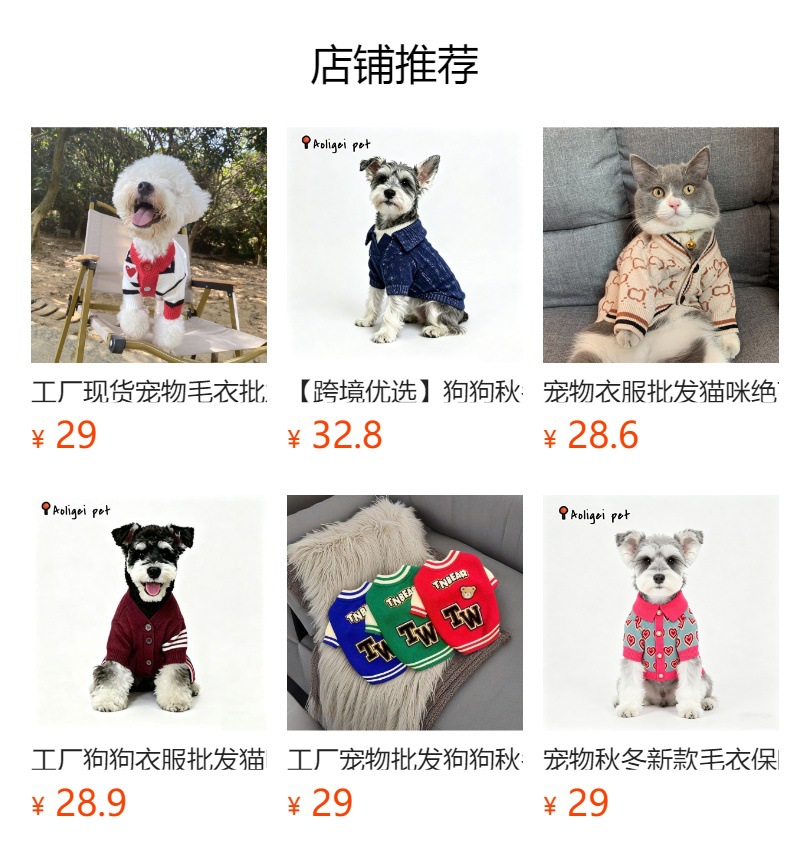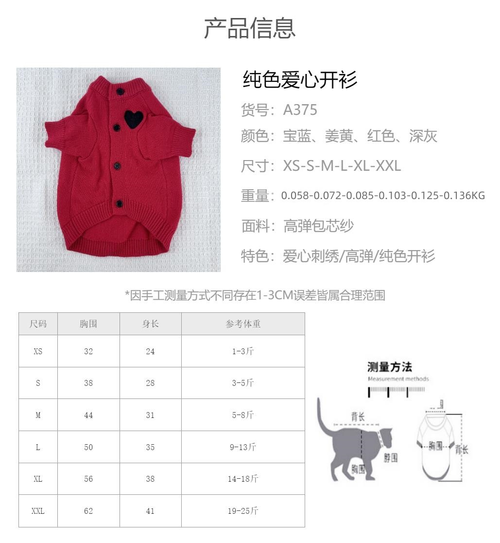 곰보다 가을과 겨울을위한 개와 고양이 따뜻한 애완 동물 스웨터 Fadou Bomei 눈 Neri 중소 단색 카디건 옷스토어 가기