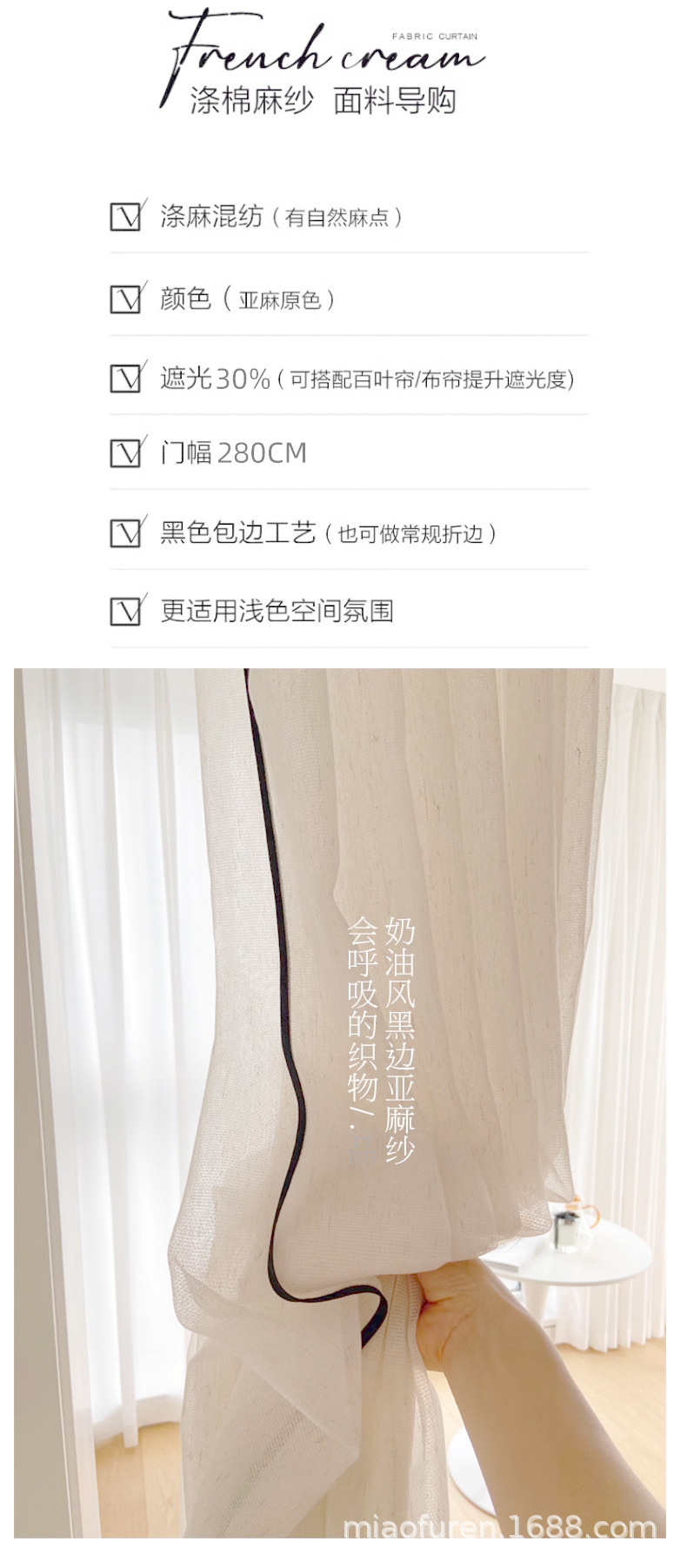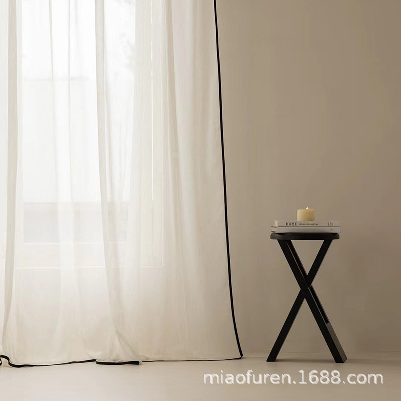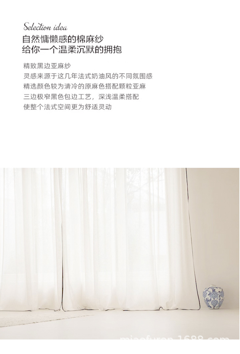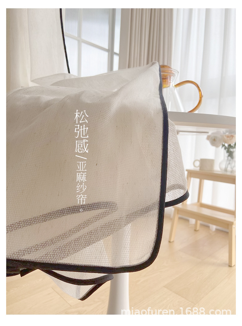 2025 새로운 스타일의 검은색 테두리 린넨 거즈 커튼, 분위기 있는 거즈 커튼, 침실 및 거실, 불투명한 창문 스크린
