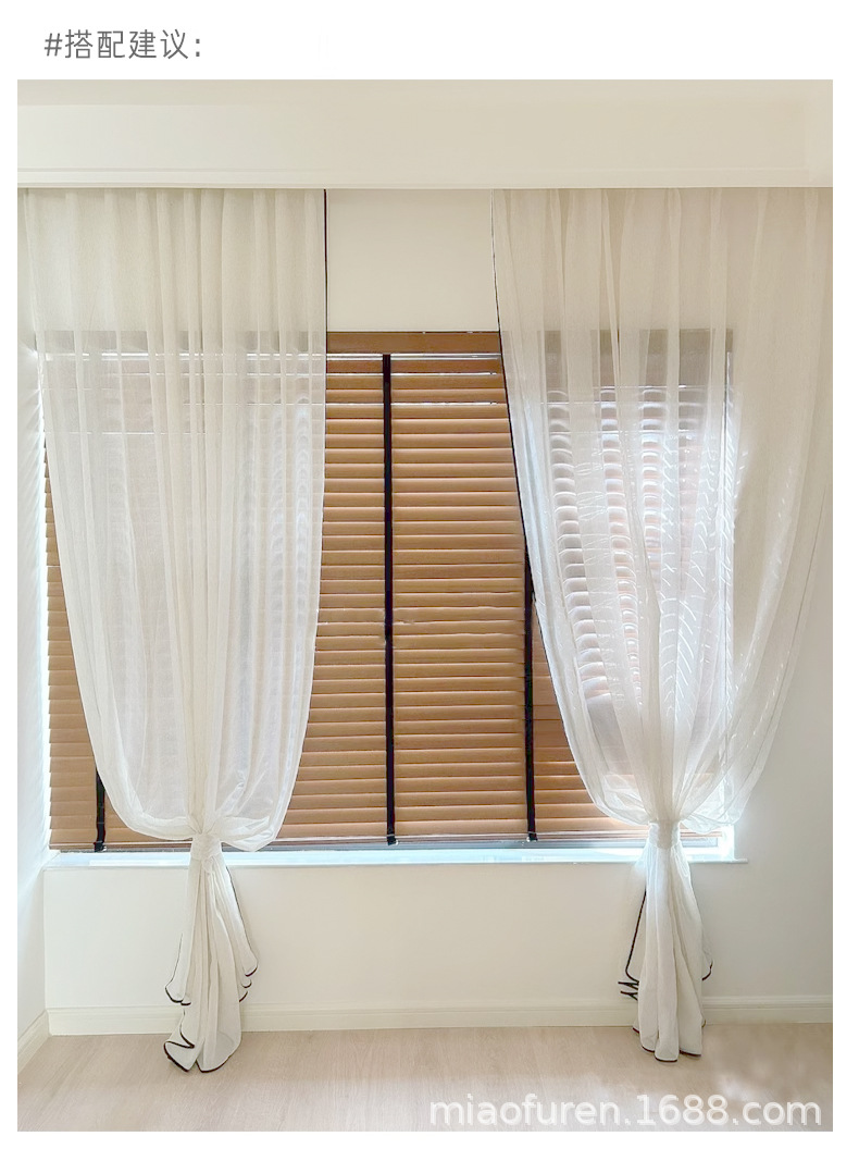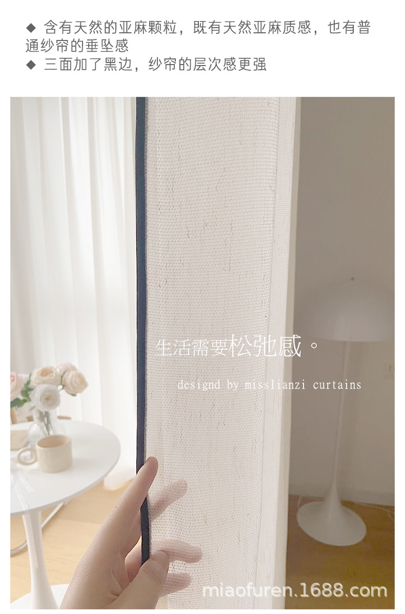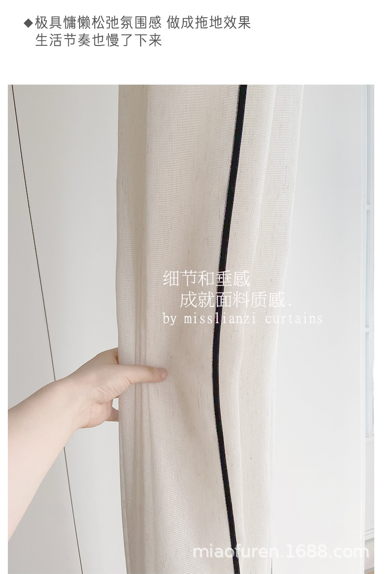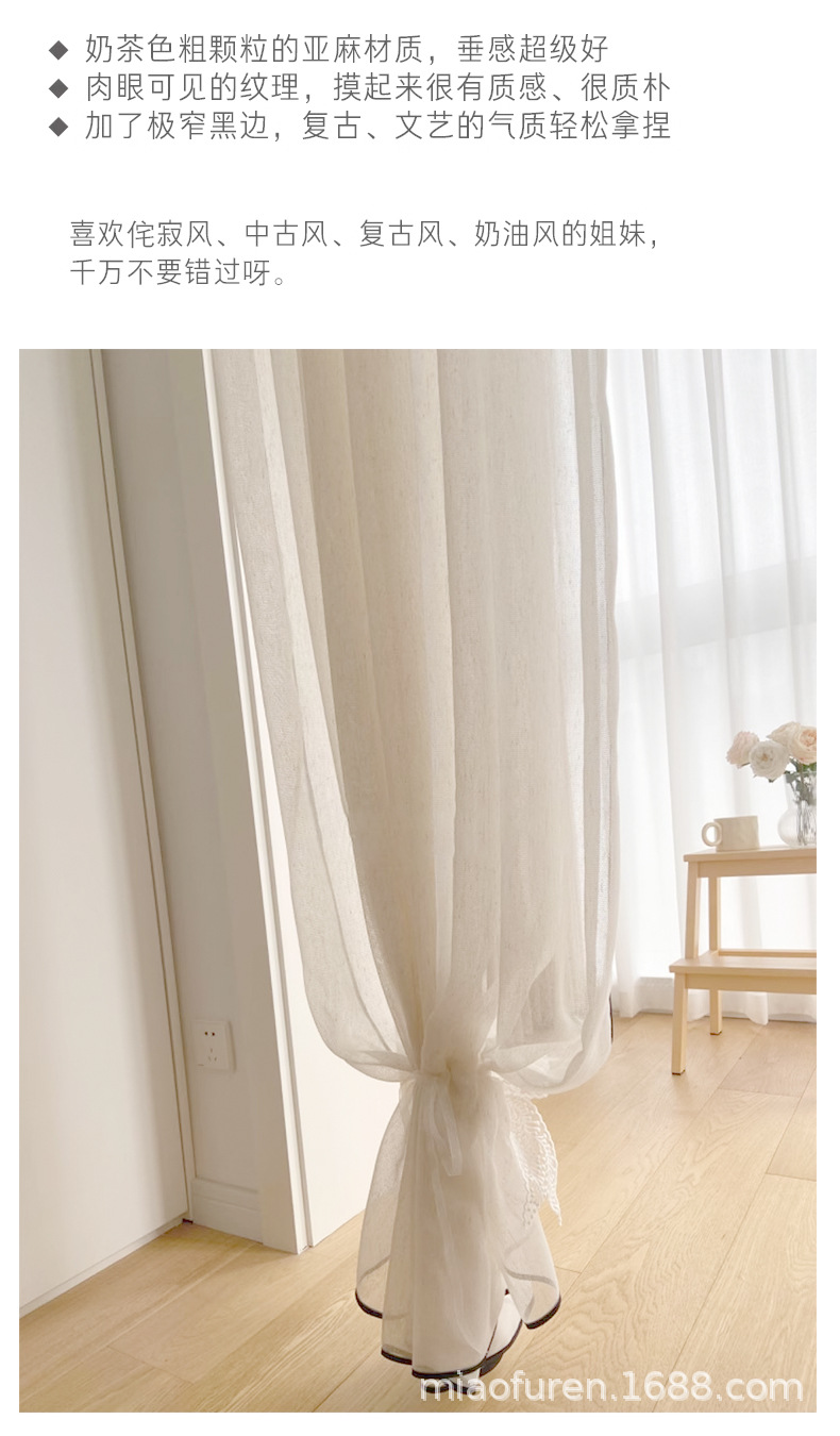 2025 새로운 스타일의 검은색 테두리 린넨 거즈 커튼, 분위기 있는 거즈 커튼, 침실 및 거실, 불투명한 창문 스크린