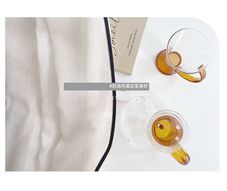 • 검은색 가장자리가 있는 크림색 리넨 거즈