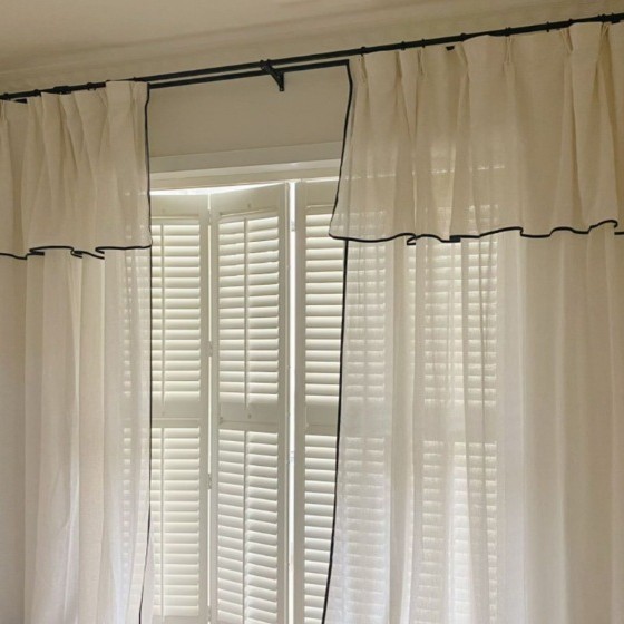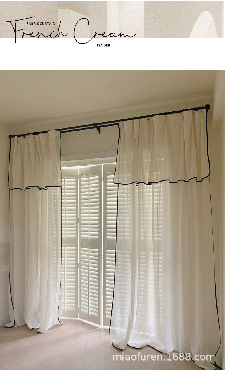 2025 새로운 스타일의 검은색 테두리 린넨 거즈 커튼, 분위기 있는 거즈 커튼, 침실 및 거실, 불투명한 창문 스크린스토어 가기