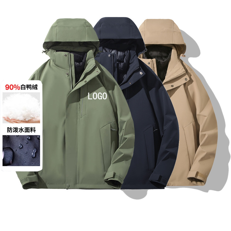 0 도 내한성 아웃도어 솔리드 컬러 쓰리인원 코트 남성용 두꺼운 따뜻한 등산 자켓 여성용 90 화이트 덕다운 라이너스토어 가기