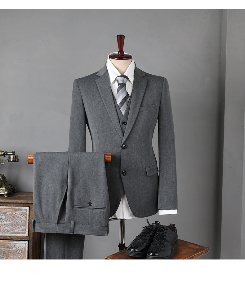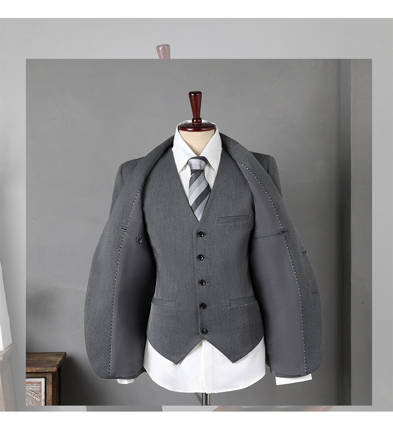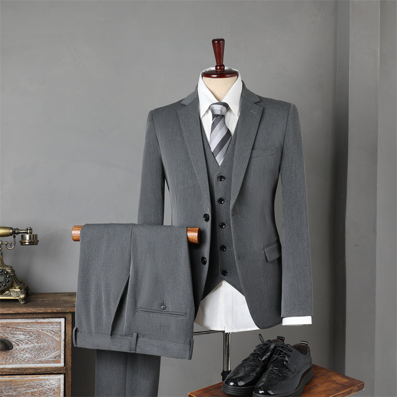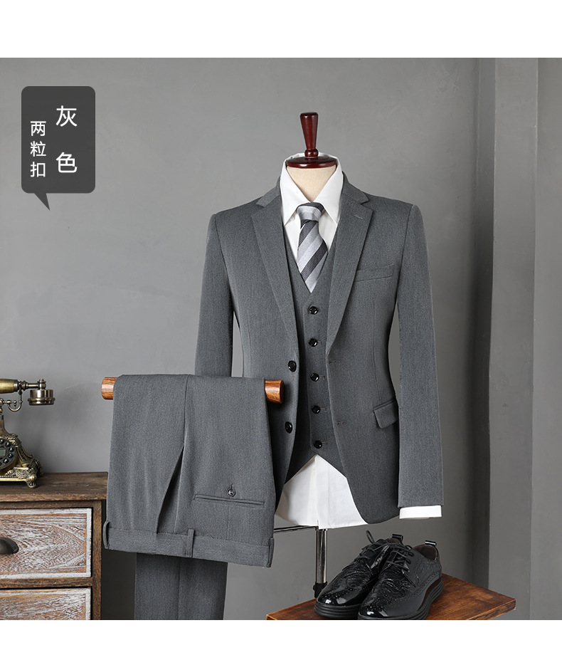 • 중간 회색 투 버튼 (세트 + 양복 조끼 + 바지)