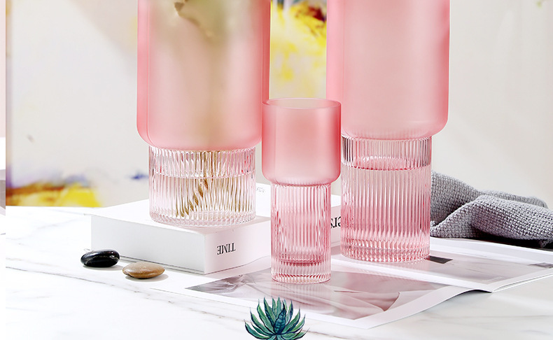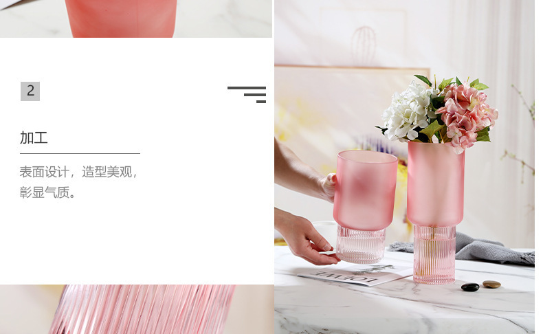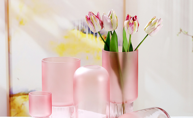 북유럽 젖빛 핑크 높은 색상 가치 유리 꽃병 수제 창조적 인 거실 데스크탑 꽃 정렬 물 장식 장식스토어 가기