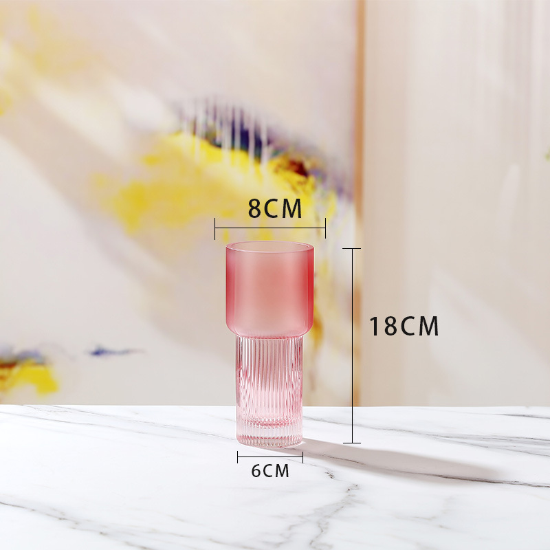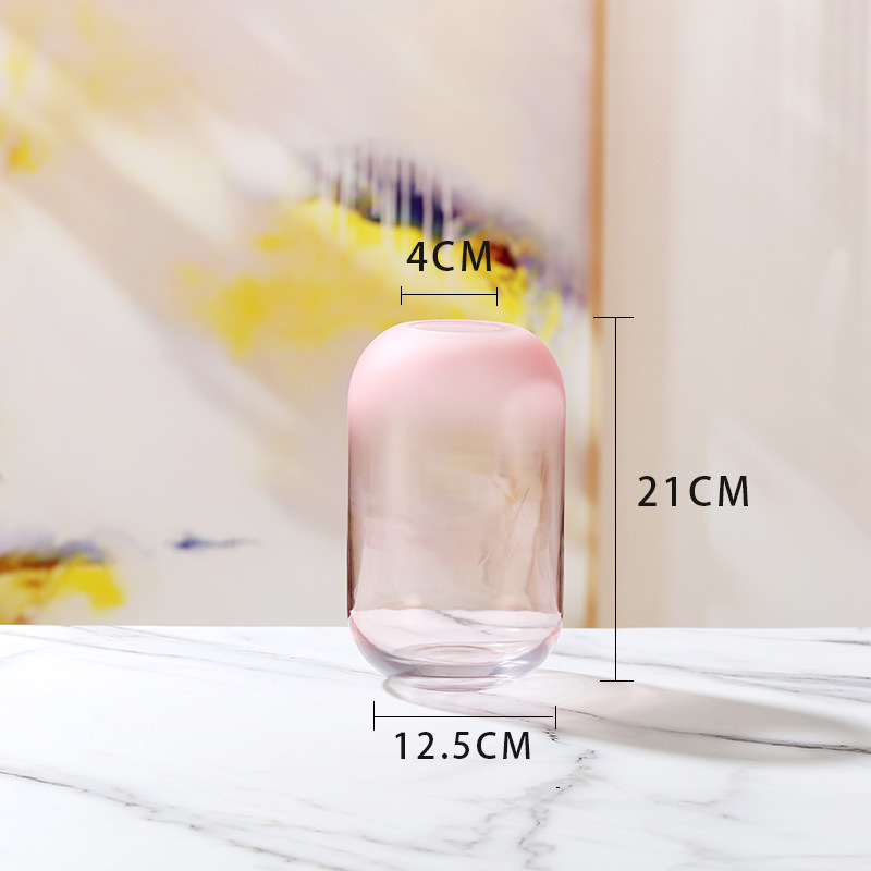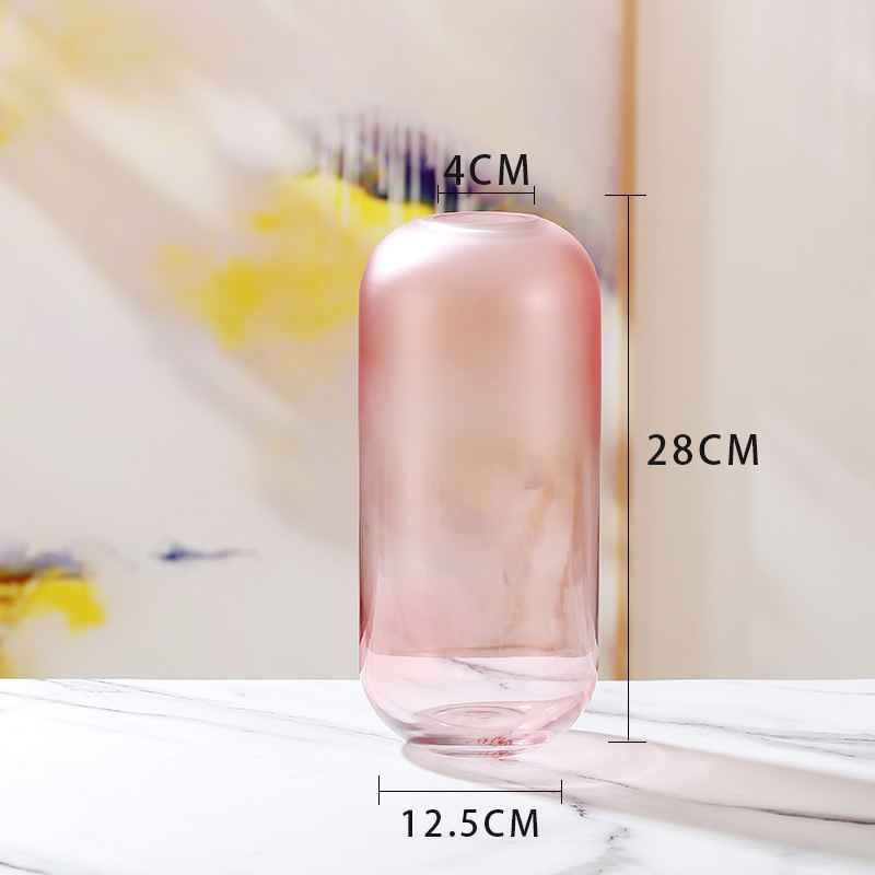 북유럽 젖빛 핑크 높은 색상 가치 유리 꽃병 수제 창조적 인 거실 데스크탑 꽃 정렬 물 장식 장식