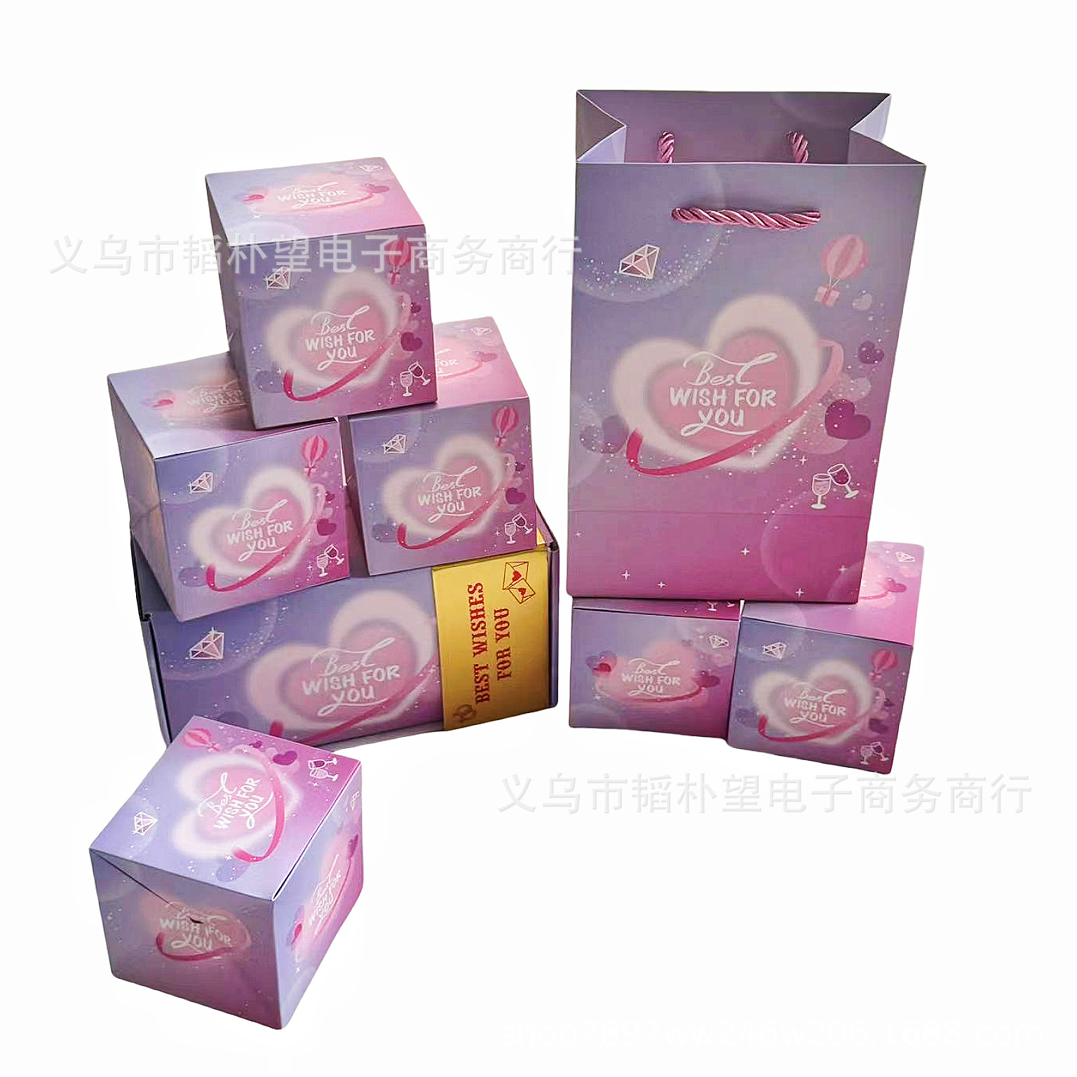 • 핑크 퍼플 다이아몬드 BEST WISHES FOR YOU; 바운스 박스 16개 + 선물 상자 + 선물 가방
