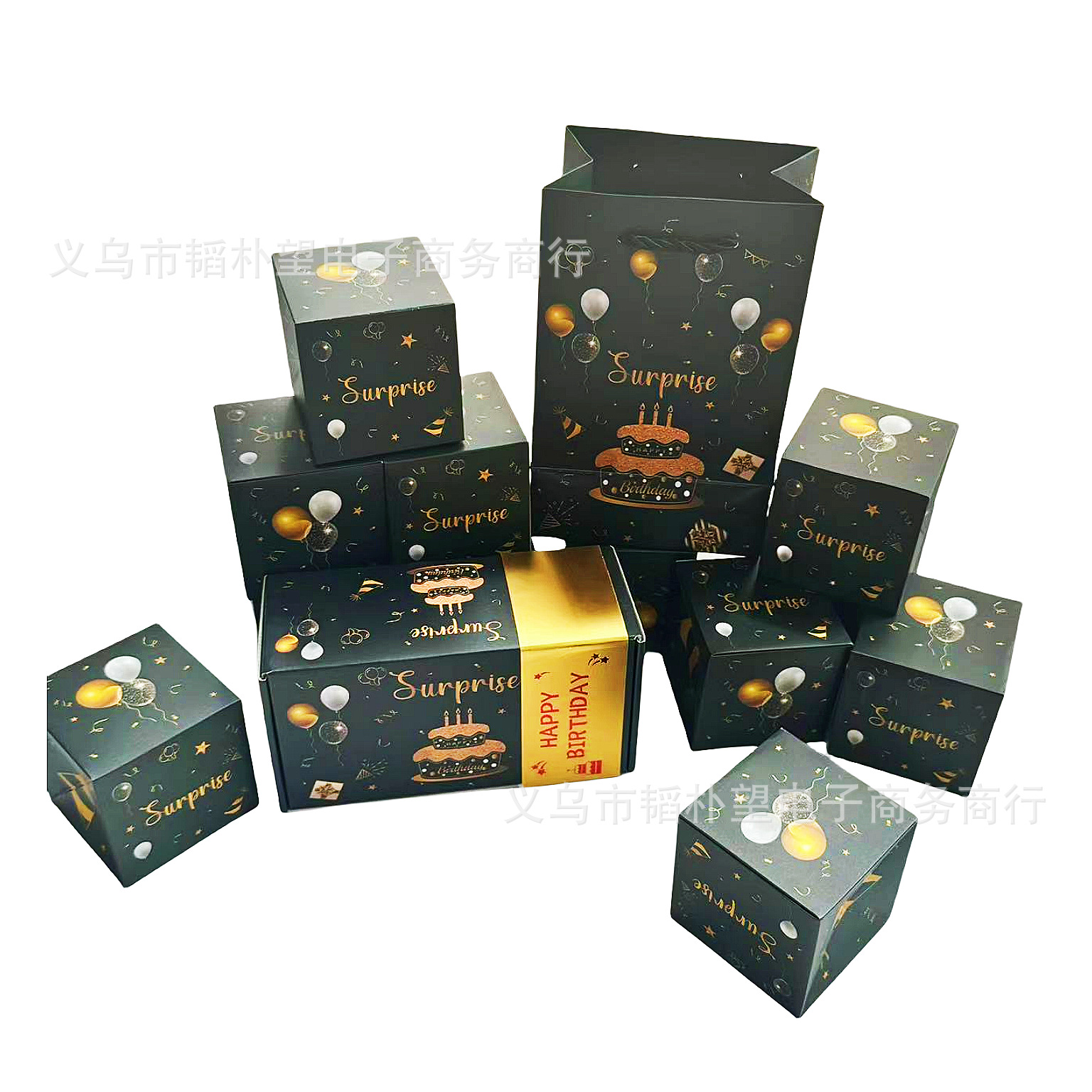 • 블랙 HAPPY BIRTHDAY; 바운스 박스 10개 + 선물 상자 + 선물 가방