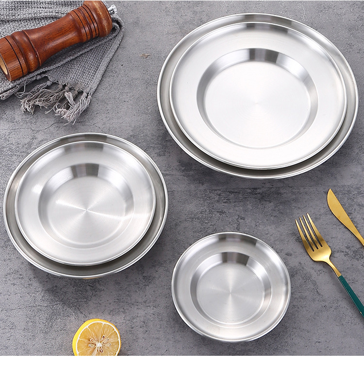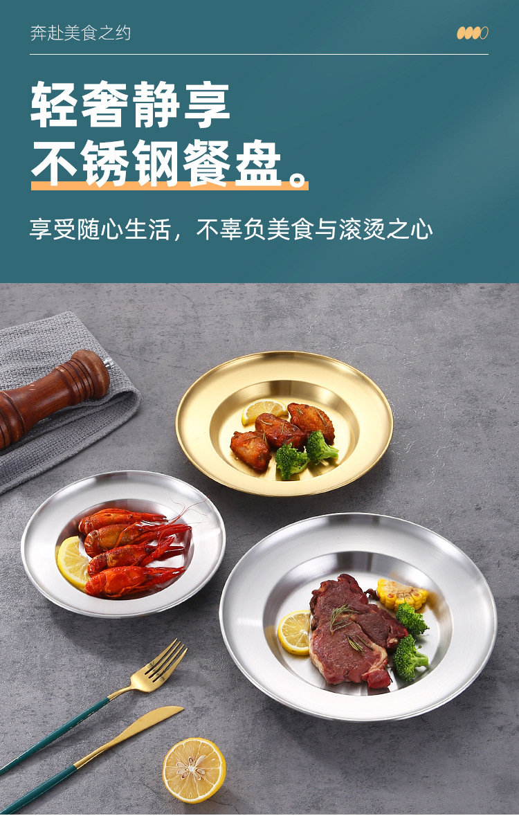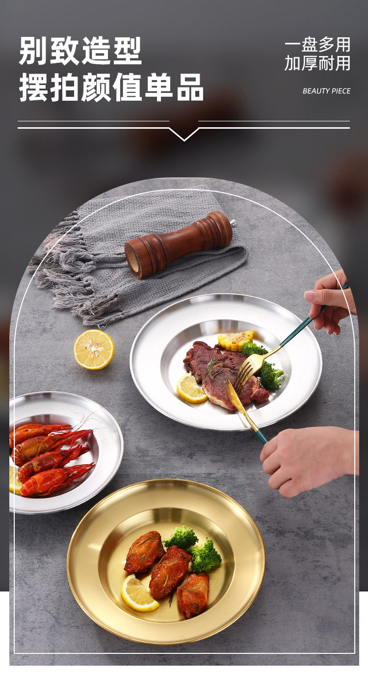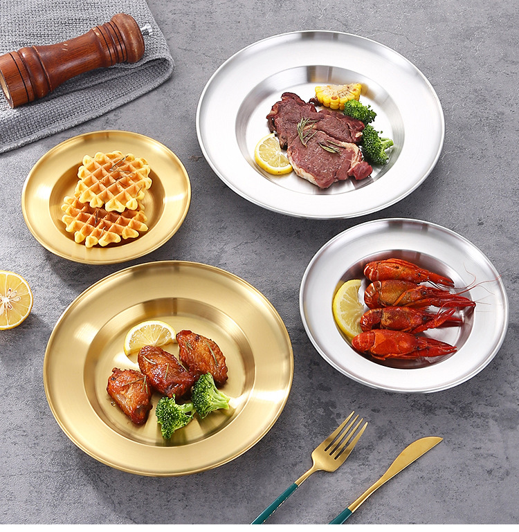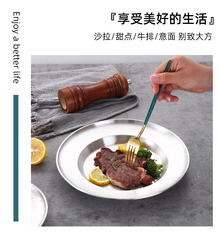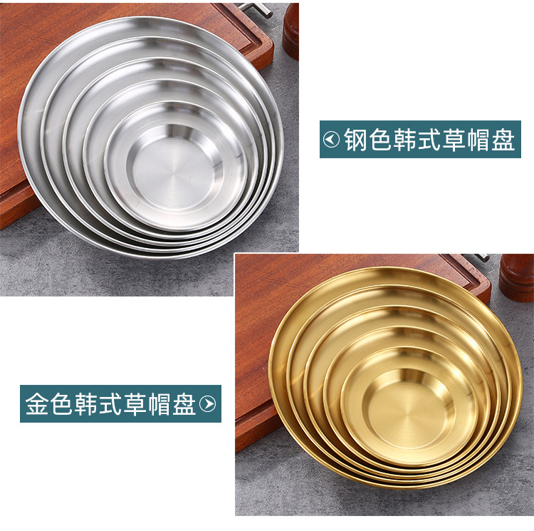 304 스테인레스 스틸 한국 밀짚 모자 접시 서양 스테이크 디저트 스파게티 상업용 스타일 냄비 접시 빈티지스토어 가기