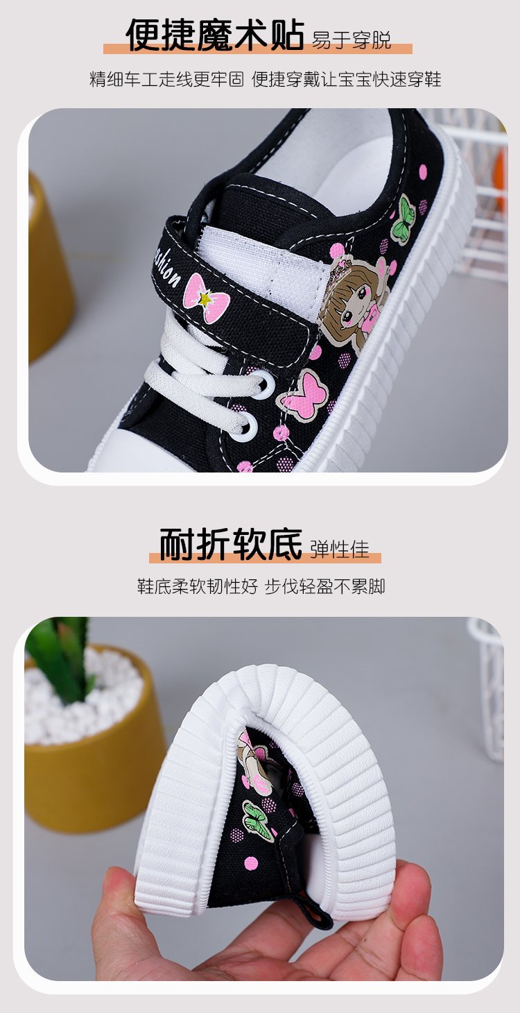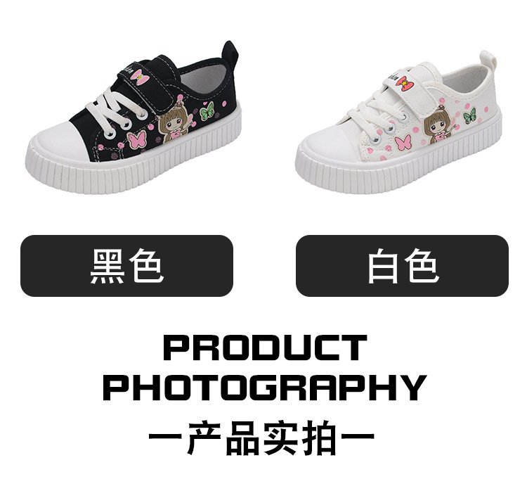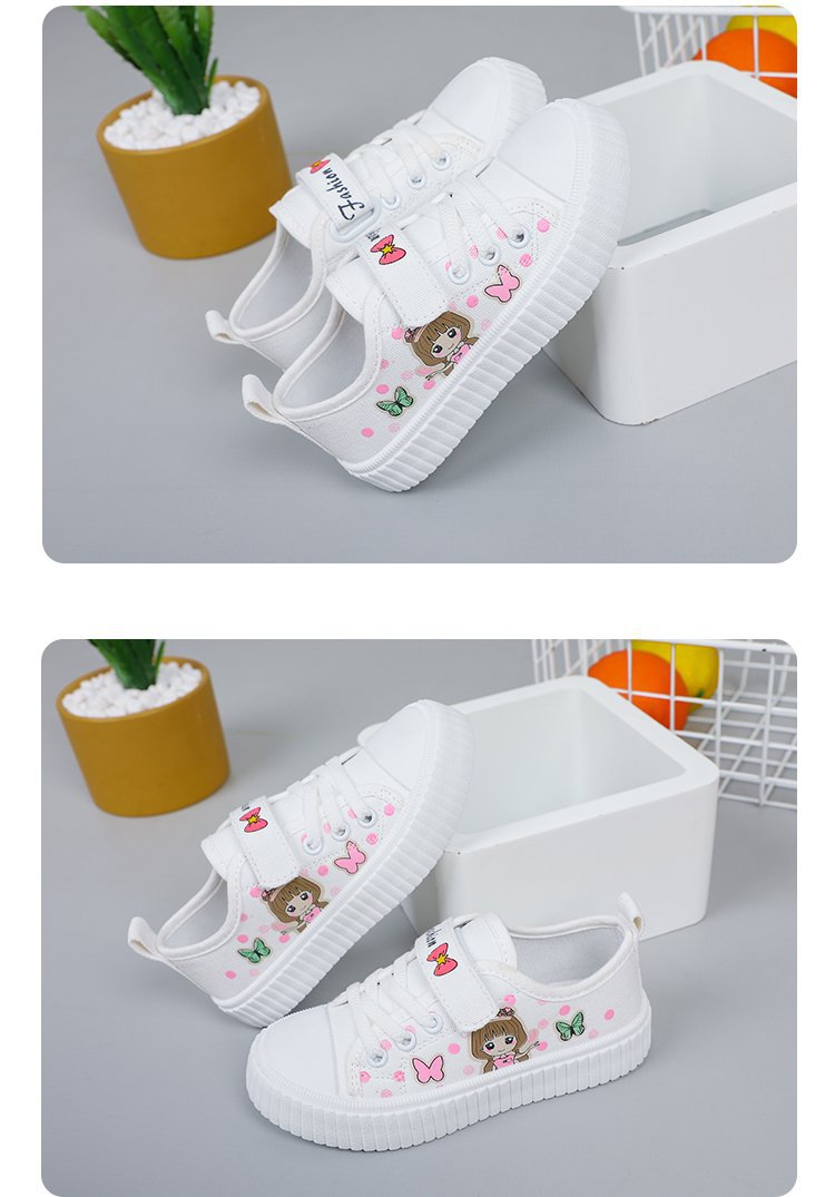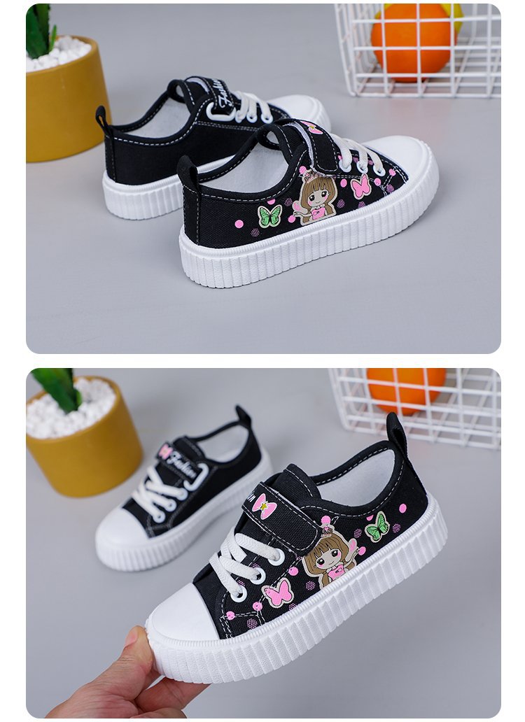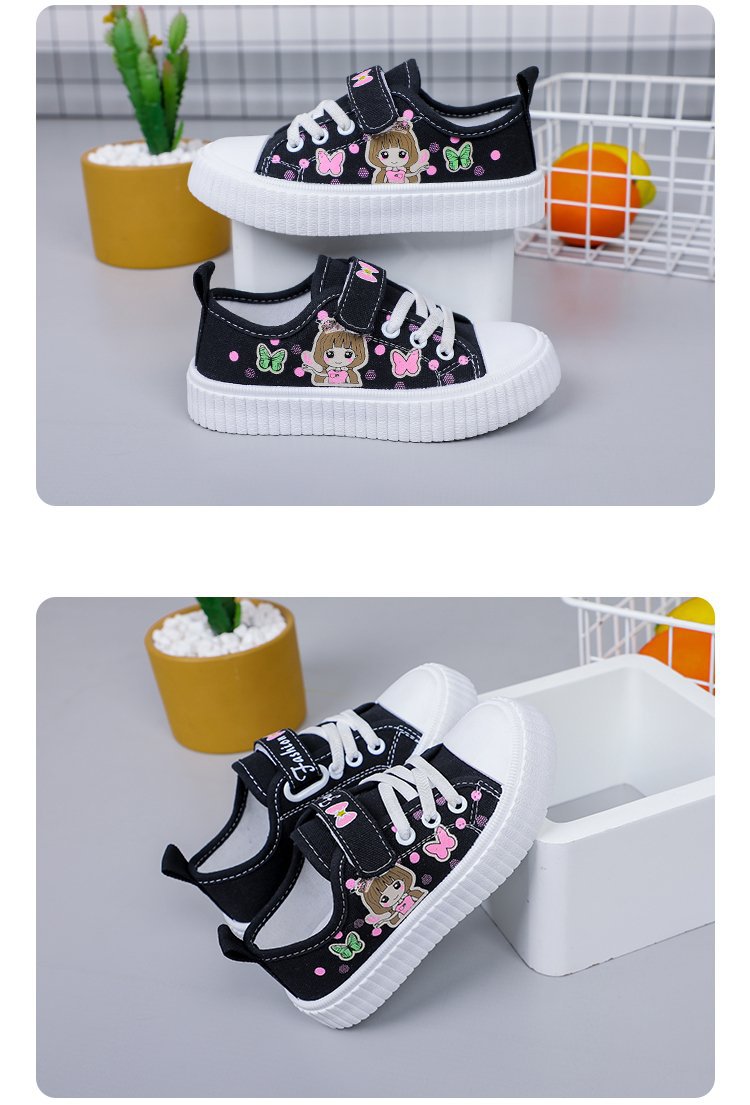 어린이 만화 2025 새로운 캔버스 신발 소녀 플랫 캐주얼 스포츠 신발 학생 플랫 경량 운동화스토어 가기