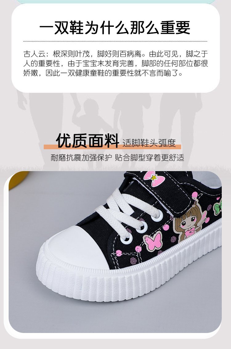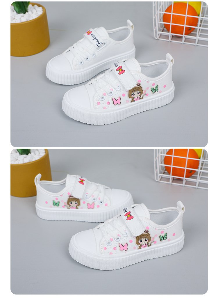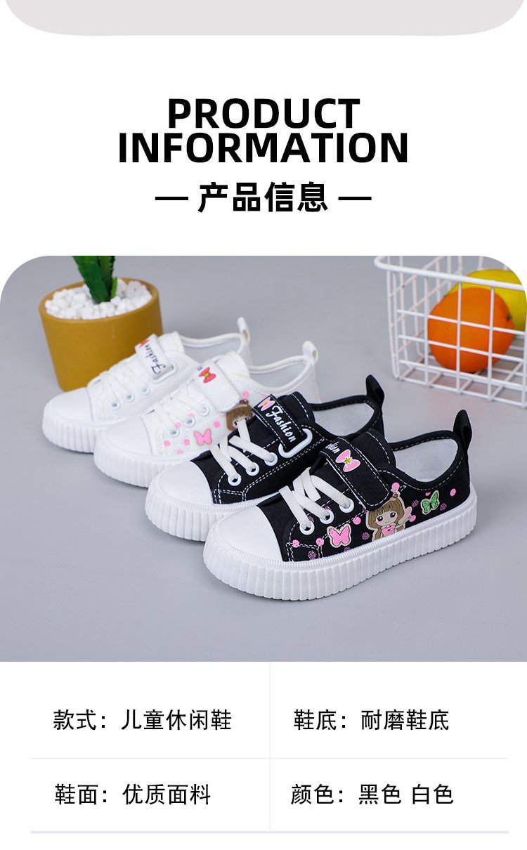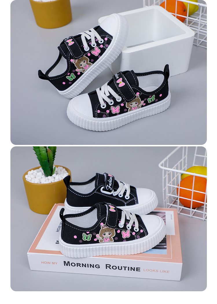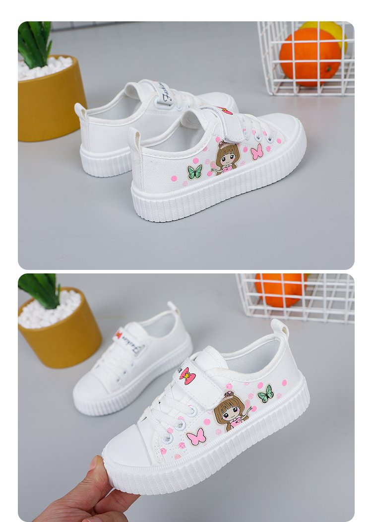 어린이 만화 2025 새로운 캔버스 신발 소녀 플랫 캐주얼 스포츠 신발 학생 플랫 경량 운동화스토어 가기