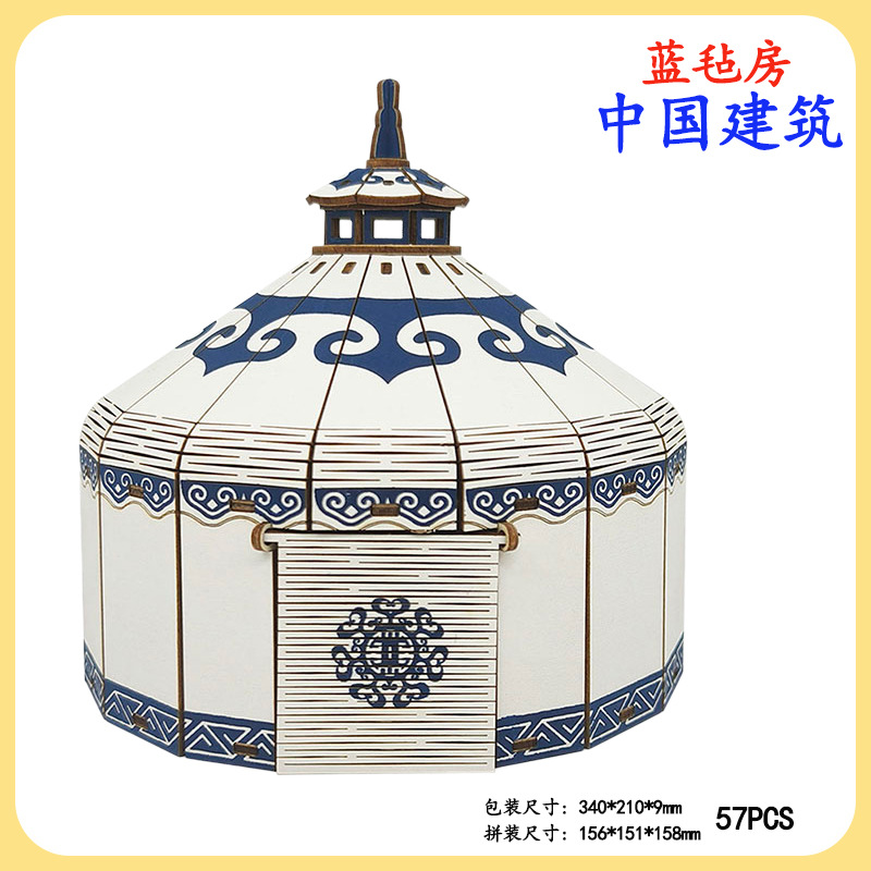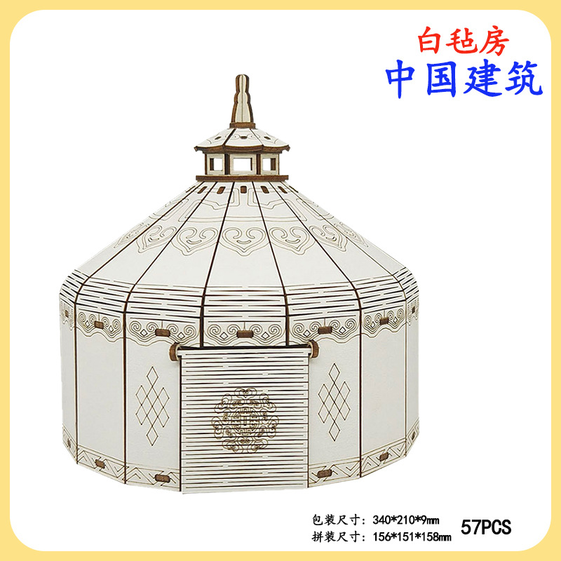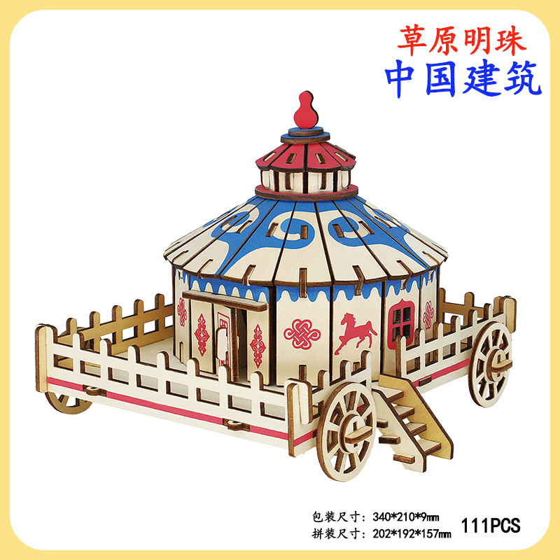 초원 흰색 텐트 기념품 몽골 텐트 손으로 조립한 모델 어린이 나무 3D 입체 퍼즐 장난감 도매스토어 가기
