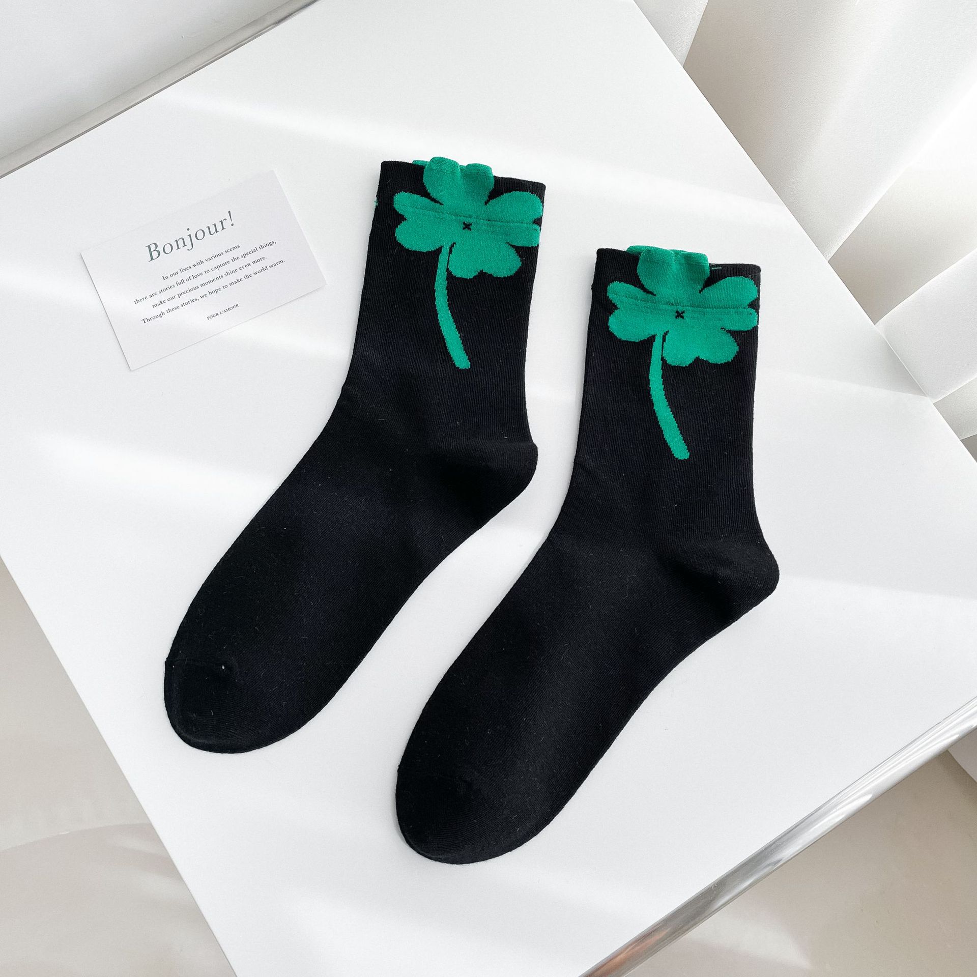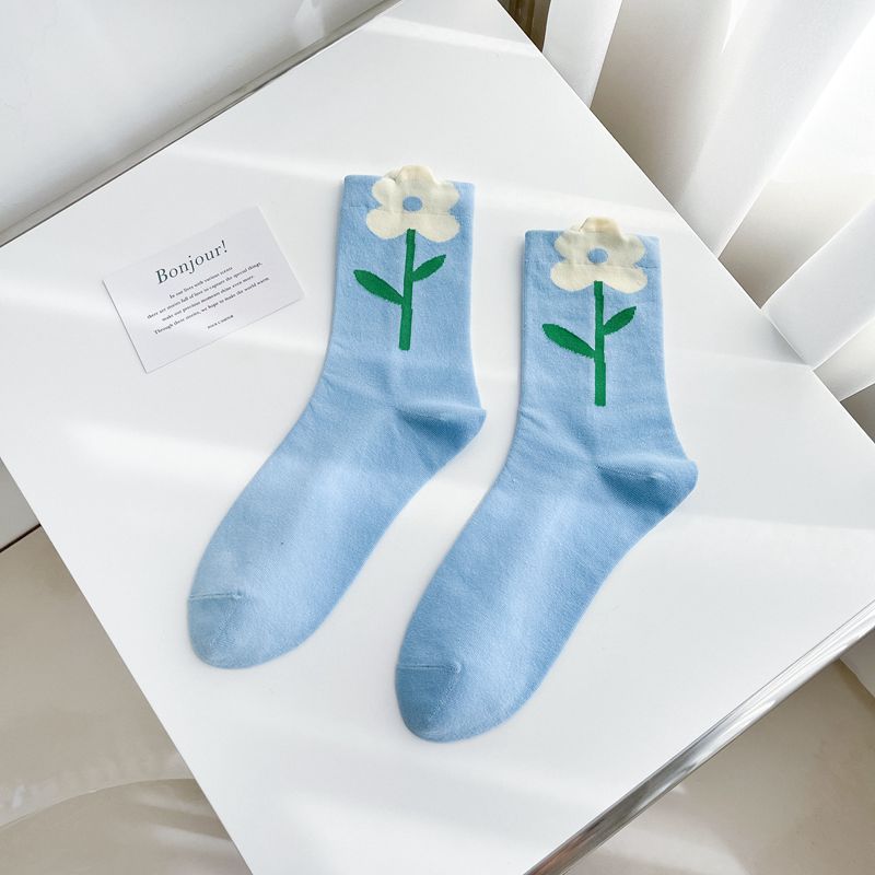 입체 꽃 양말 여성용 중간 길이 양말 트렌디 한 면 가을과 겨울 일본식 귀여운 봄과 가을 여성용 달콤한 스타킹